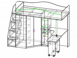 Кровать-чердак с рабочей зоной Мираж К5 BMS