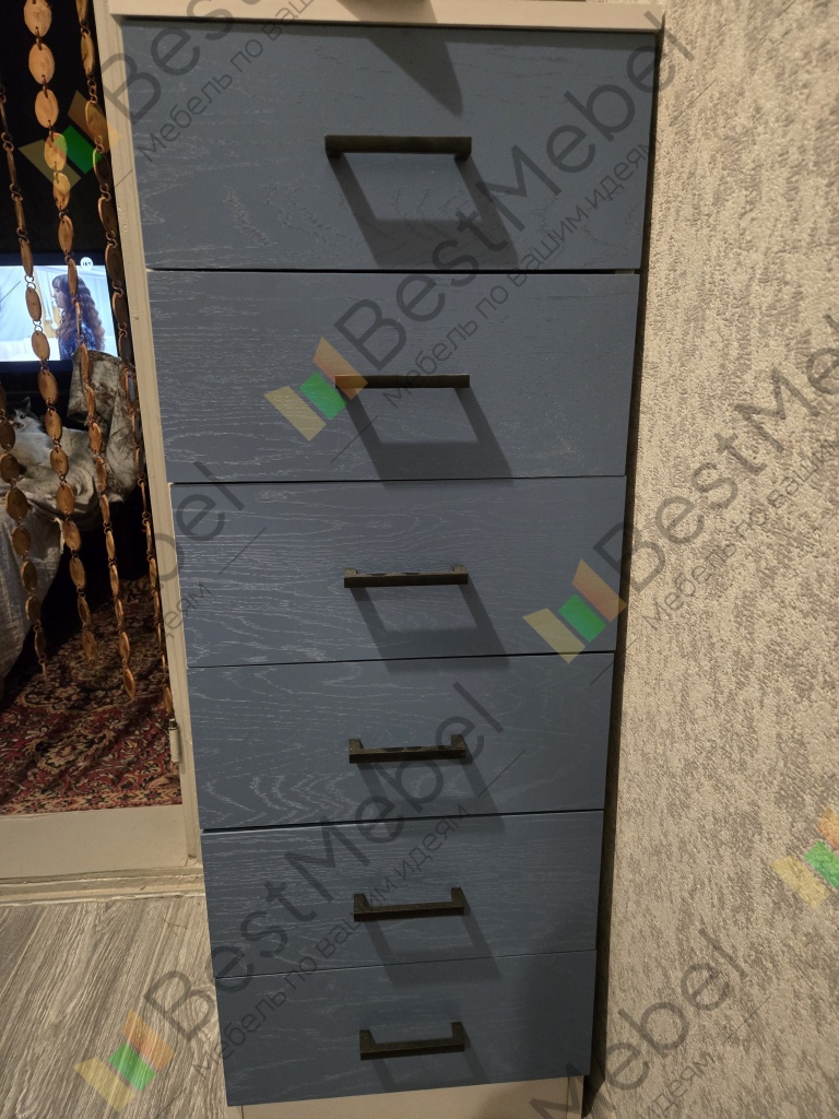 Я доволен комодом. Сделали по моим размерам и дизайну. Он отлично вписался в пространство и выглядит так, как я хотел. Качество материалов хорошее. Радует, что можно самому выбирать дизайн. Заказ 00000364686.