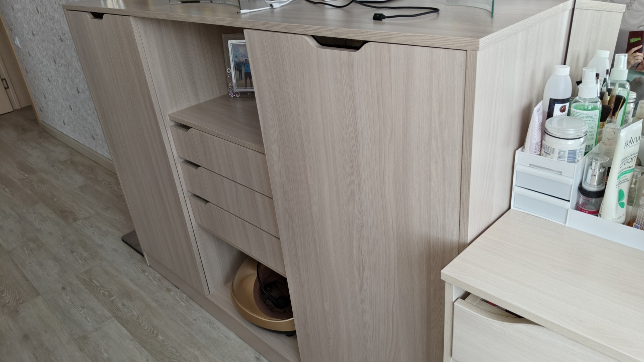 Хороший комод, очень вместительный. Сборка проблем не составила.