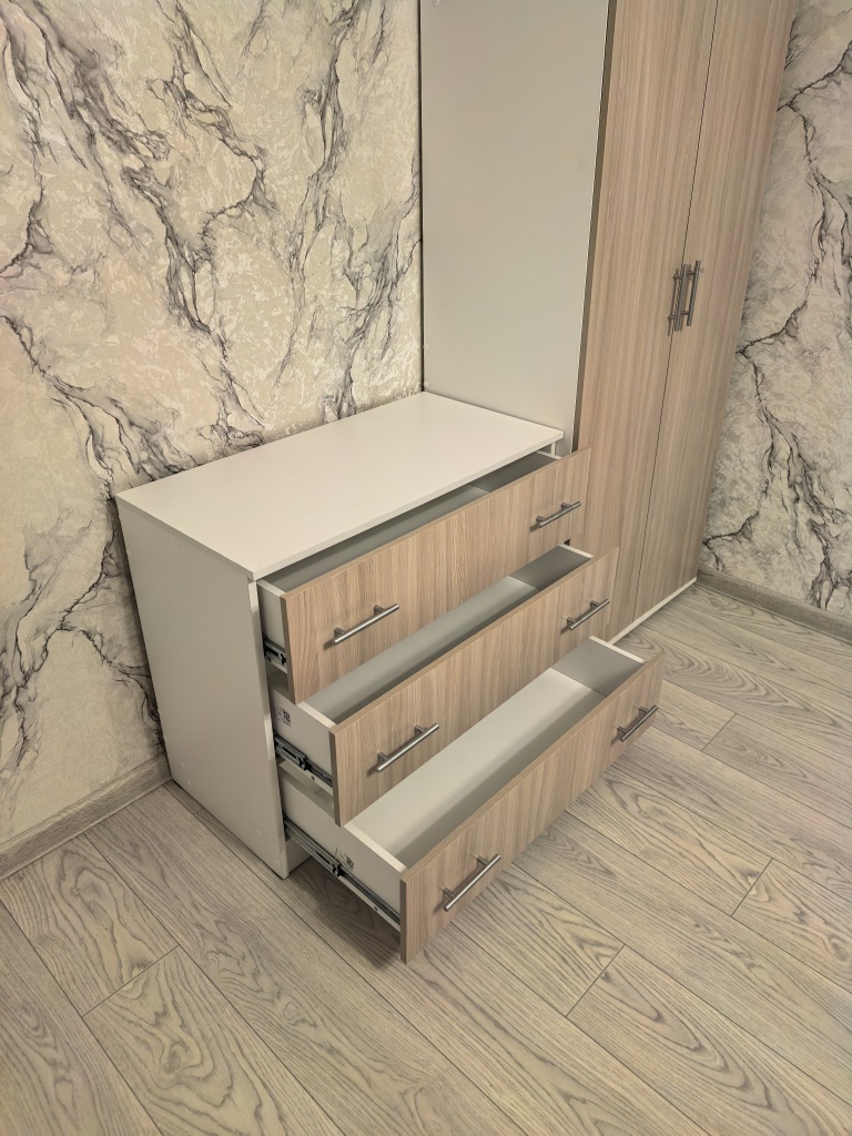 хороший комод. запаха почти не было. немного не устойчив, если выдвинуть все ящики начинает шататься. взяла другие направляющие, тк ящики тяжелые. собирается легко