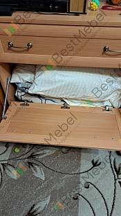 Отличный комод: вместительеый, удобный, красивого дизайна. Сборка немного напрягла: муж немного запутался в досках (инструкция непонятная, надо последовательные шаги указать, а не картинку в разрезе. Но самое загадочное - отсутствие дыр для ручек на откидной крышке. Пришлось высверливать для болтов. Затратно по времени вышло.
