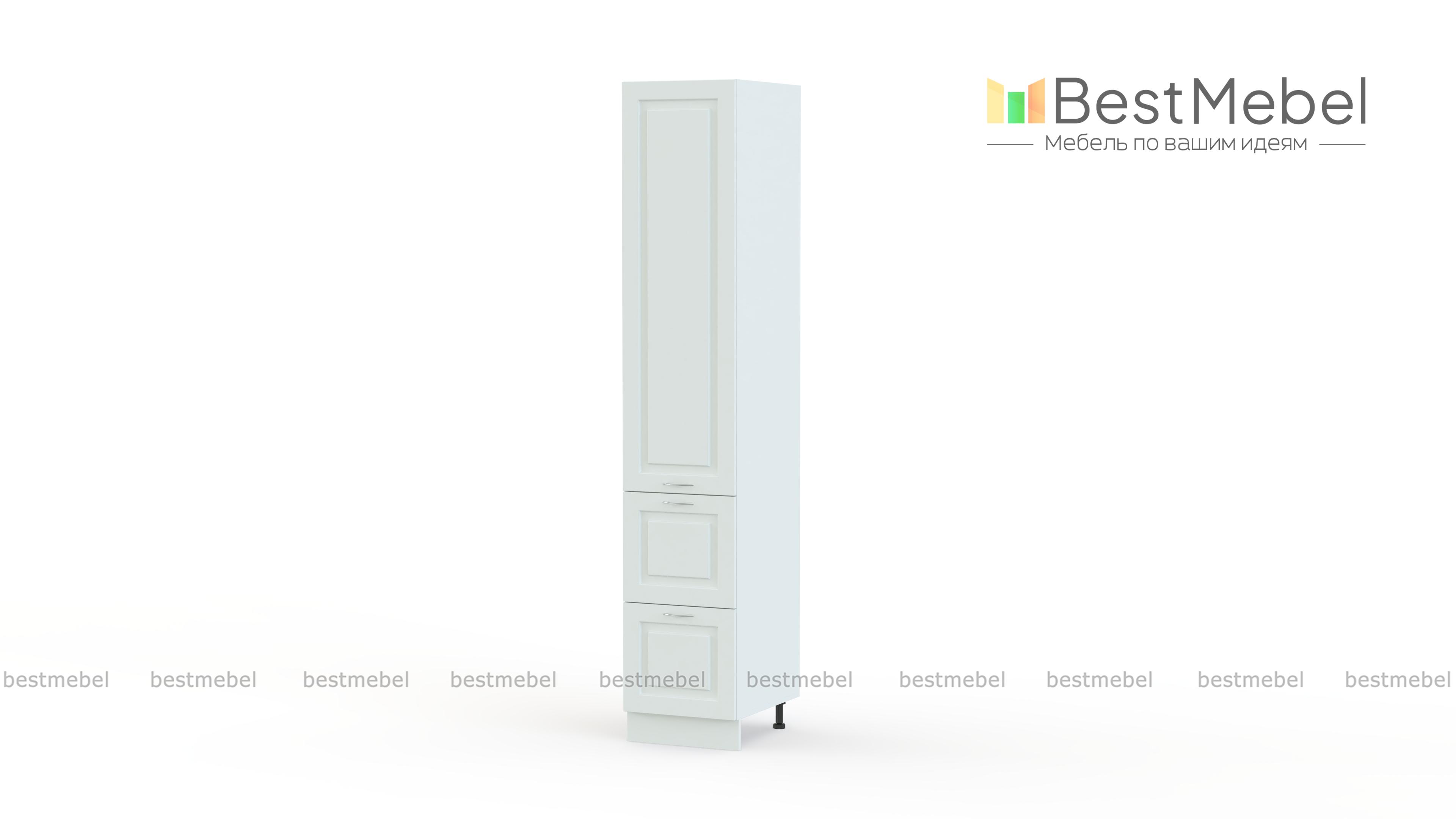 Пенал Гарда с ящиками BMS – практичная система хранения и интересный акцент в интерьере современной кухни. Высокий пенал оборудован двумя глубокими выдвижными ящиками в основании и распашным отделением с полками, в которых смогут разместиться посуда для готовки, продуктовые запасы, а также разнообразные кухонные аксессуары. Фрезерованные фасады с имитацией текстуры камня дополнены лаконичными хромированными ручками-скобами. Купить пенал Гарда с ящиками BMS приглашаем недорого в наш интернет-магазин.