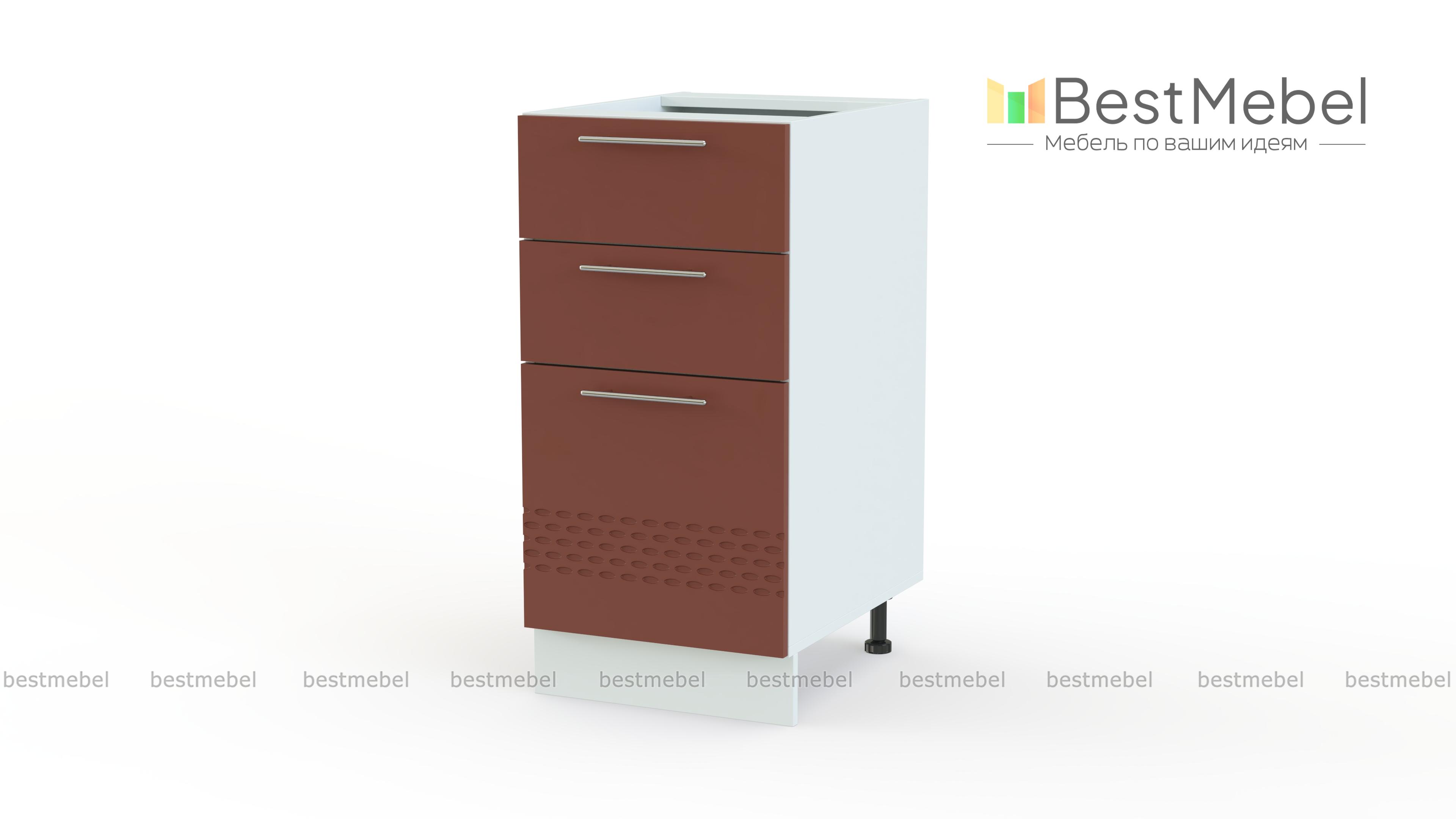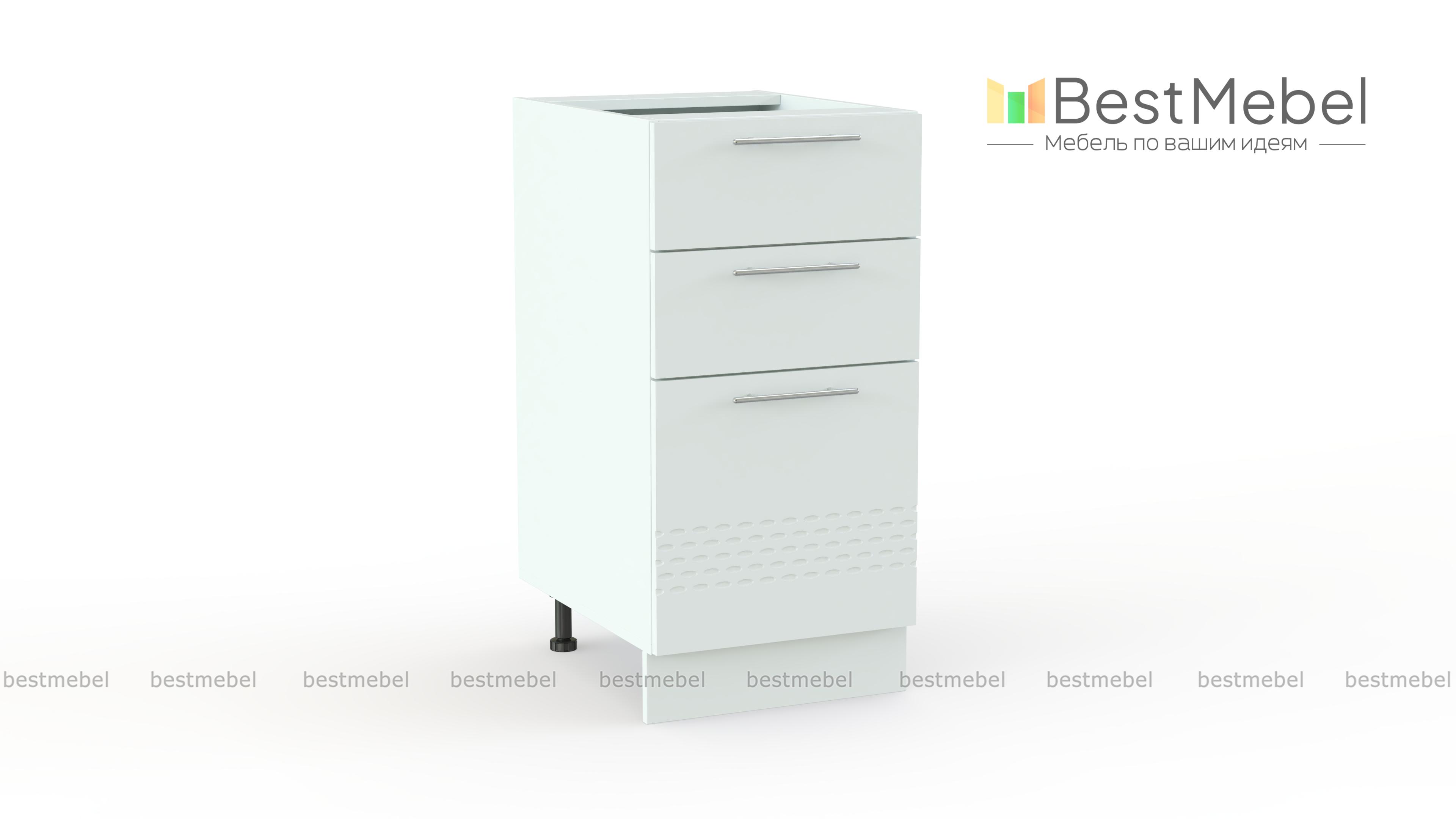 Шкаф нижний 300мм 3 ящика Капля BMS представляет собой небольшую по ширине тумбу, которая поможет оптимизировать хранение мелочей и гармонично впишется в малогабаритные кухни. Модель оборудована тремя выдвижными ящиками разных размеров и удобна для столовых приборов и необходимых под рукой кухонных принадлежностей. Матовые фасады шкафа, выполненные в белом оттенке и декорированные рельефом, создадут позитивную атмосферу и надолго сохранят эстетичный вид благодаря износостойким материалам. Купить шкаф нижний 300мм 3 ящика Капля BMS приглашаем в наш интернет-магазин.