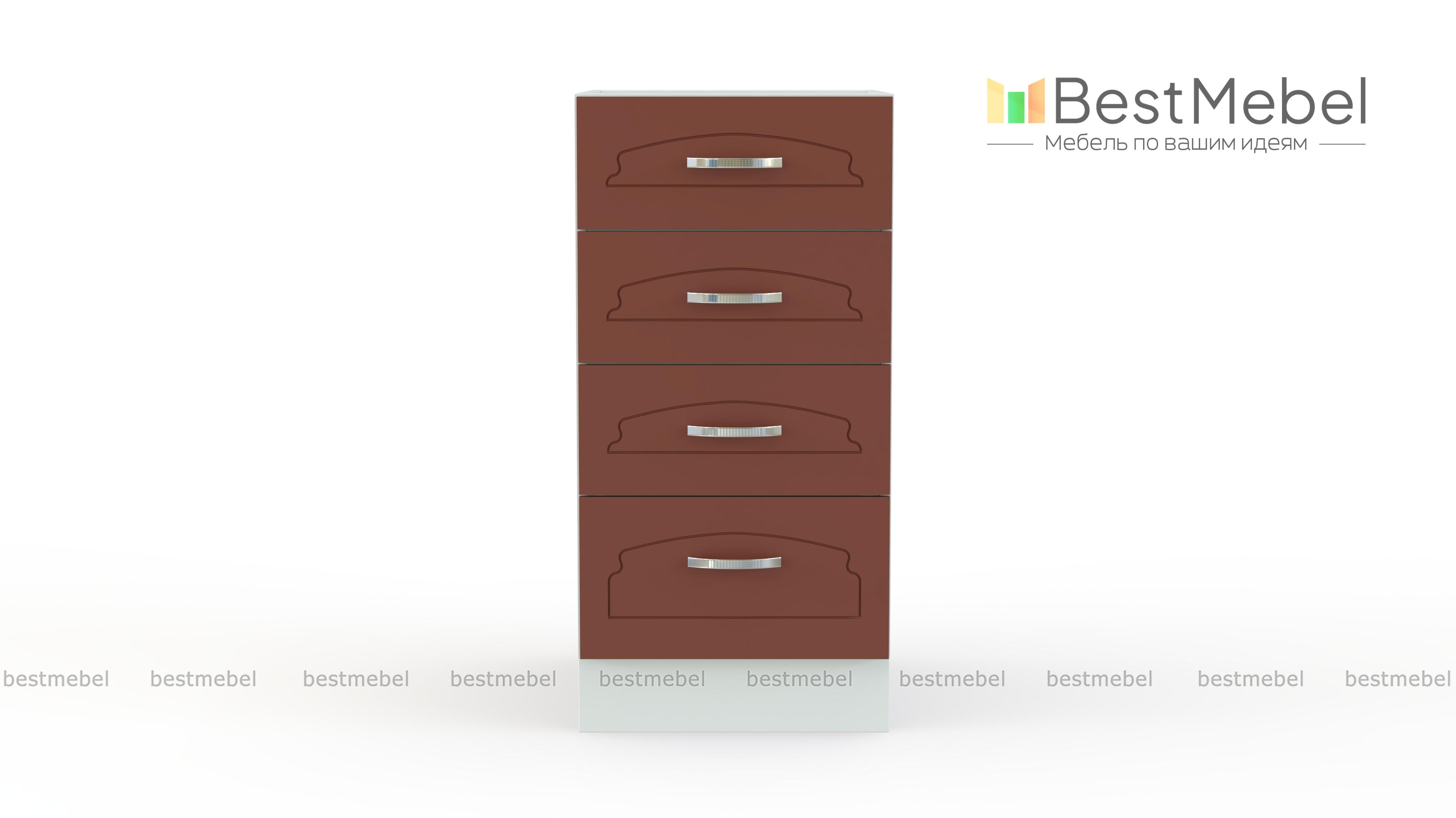 Шкаф нижний с 4-мя ящиками Настя BMS – это компактные размеры и продуманная конструкция из четырех выдвижных ящиков. Разные по высоте, они сделают особенно удобным хранение разнообразных кухонных мелочей, а малые габариты модели подойдут небольшим помещениям. Тумба на регулируемых пластиковых опорах, закрытых цоколем, может использоваться как в комплекте, так и самостоятельно. Купить шкаф нижний с 4-мя ящиками Настя BMS, подобрав нужные параметры, вы сможете в нашем интернет-магазине по приятной цене.