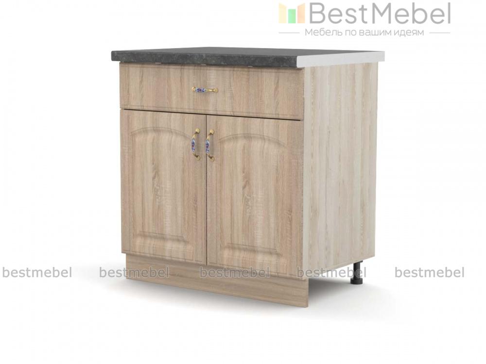 Стол с ящиком Трапеза BMS дополнит нижний ряд модулей кухонного гарнитура в классическом стиле. Тумба отличается практичной комбинированной конструкцией и оборудована широким выдвижным ящиком, удобным для хранения столовых приборов и прочих мелких вещей, и распашным отделением с полкой для габаритных предметов и продуктов. Изящные фасады выполнены в модном пастельном оттенке и украшены ручками-скобами под серебро. Купить стол с ящиком Трапеза BMS для эстетичного и комфортного интерьера приглашаем в наш интернет-магазин.