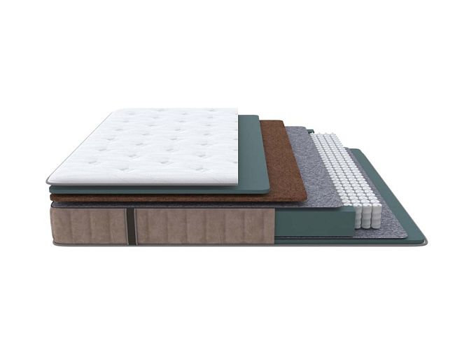Состав: Меморикс 2см \ Ортофом (ППУ) 2см \ Ортофом (ППУ) высокоэластичный 5 см \ Спанбонд \ EVS620 16см \ Спанбонд \ Ортофом (ППУ) повышенной жесткости 2см \ Короб Ортофом (ППУ).