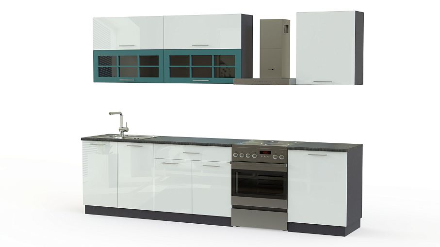 Кухня Базис 06 BMS – яркий представитель стильной современной мебели. Модель большая и функциональная. При ее изготовлении используются самые современные материалы, модные цвета и оригинальная фурнитура. Гарнитур состоит из двух больших и одной поменьше нижних тумб с распашными дверками и полками, трех навесных шкафчиков. Два из них большие и имеют очень оригинальный дизайн: шкафчик двойной, с открывающейся вверх дверкой, нижняя из которых стеклянная. В нашем интернет-магазине Вы можете заказать кухню Базис 06 BMS других цветов оформления фасада, а также, при желании, можете изменить базовые размеры.