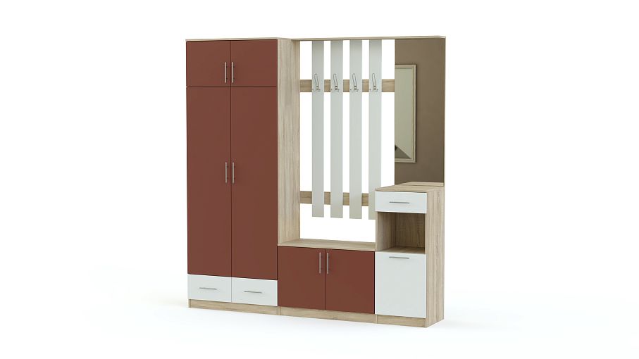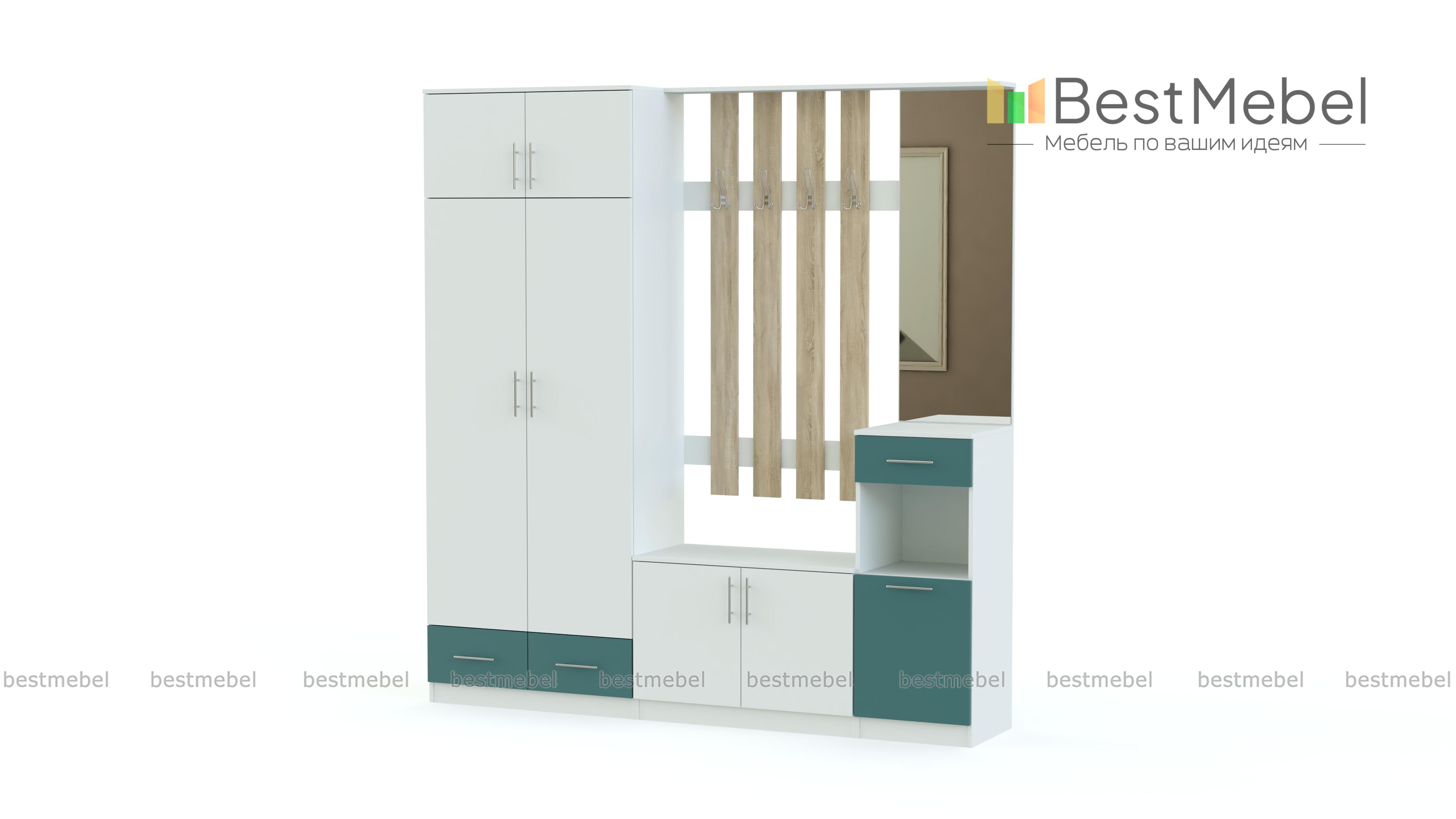 Стенка-прихожая «Идеал 20» BMS – современная стенка, которую отличает не только вместительность, но и яркий дизайн. Распашной платяной шкаф, две тумбы и панель с крючками и зеркалом выполнены в светлом оттенке под массив дерева и декорированы сочными матовыми вставками контрастного цвета. Интересный акцент добавит домашнему интерьеру красок и создаст позитивное настроение. Купить стенку-прихожую «Идеал 20» BMS по привлекательной цене вы можете в нашем интернет-магазине.