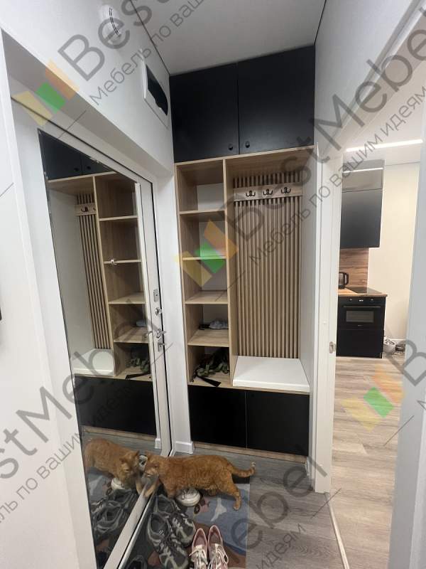 Прихожая Дублин 24 BMS имеет небольшую ширину, поэтому прекрасно подходит для малогабаритных помещений. Композиция состоит из панелей открытой вешалки с крючками, стеллажа, антресоли и закрытых дверцами обувных полок. Однотонные фасады без лицевой фурнитуры красиво выделяются на фоне корпуса в древесных тонах, сиденье имеет износостойкую мягкую обивку. Купить прихожую Дублин 24 BMS с выбором цветовой гаммы и размеров вы сможете на сайте нашего интернет-магазина.