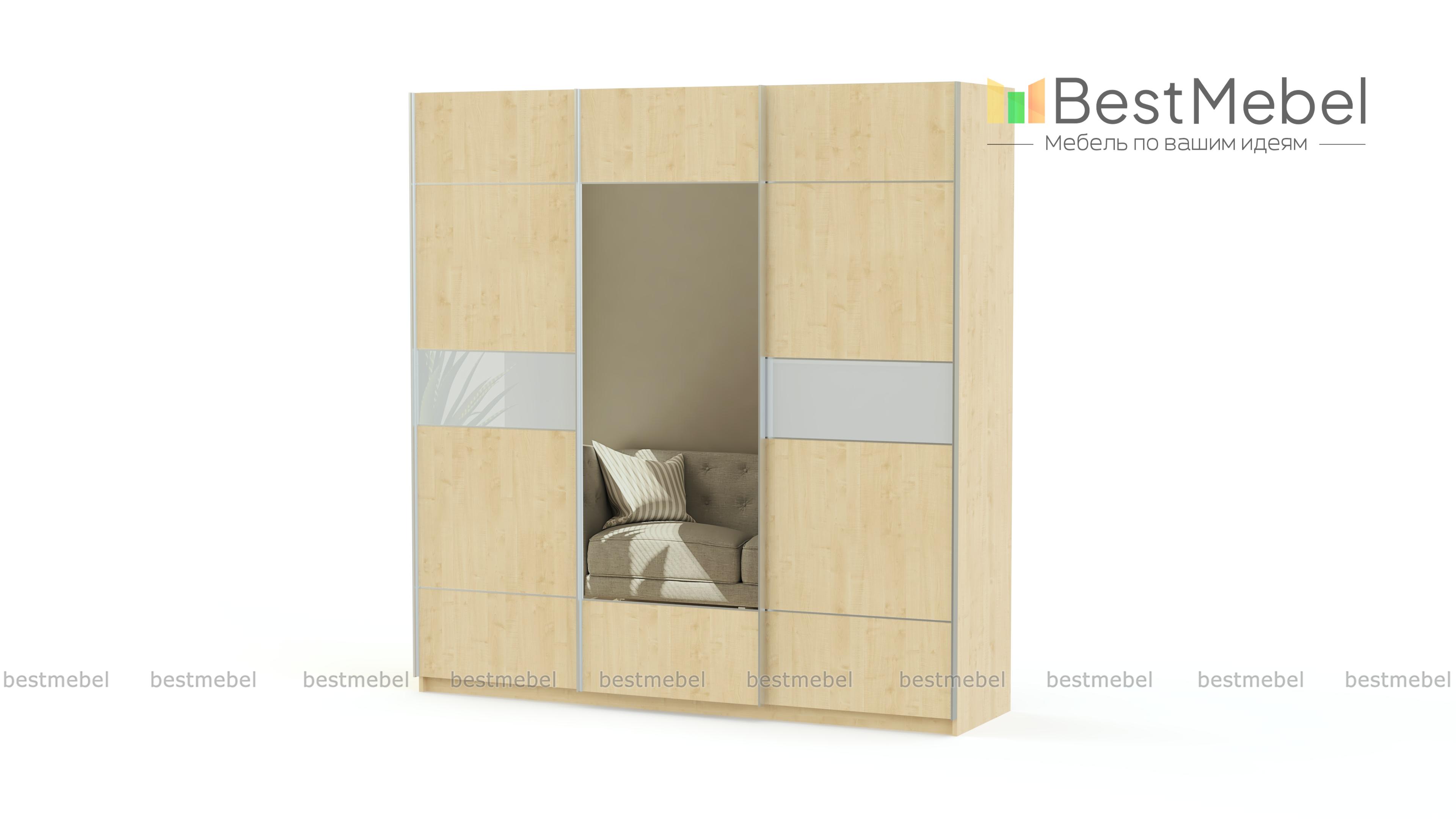 Спокойные натуральные тона массива дерева и геометрический рисунок шкафа-купе Риан 23 BMS подойдут современным интерьерам – лофт, эко, минимализм. Трехстворчатая модель на редкость вместительна и позволит разместить одежду, обувь и другие предметы гардероба. Внутреннее наполнение включает в себя бельевые полки и отделение со штангой. Центральная дверца декорирована зеркалом в полный рост, раздвижная конструкция не только удобна, но и экономит в помещении место.