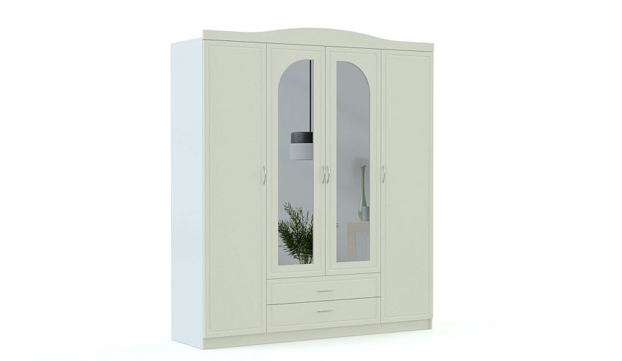 Распашной шкаф Марьяна BMS – это вместительная модель в классическом стиле, которая станет прекрасным выбором для просторной спальни. Украшенный фигурным карнизом и фрезеровкой, шкаф выполнен в светлом оттенке и дополнен образующими элегантную арку зеркалами. Четырехдверная модель оборудована распашными отделениями с бельевыми полками и штангой, а также двумя выдвижными ящиками в основании. Купить распашной шкаф Марьяна BMS вы сможете в нашем интернет-магазине, подобрав необходимые параметры.