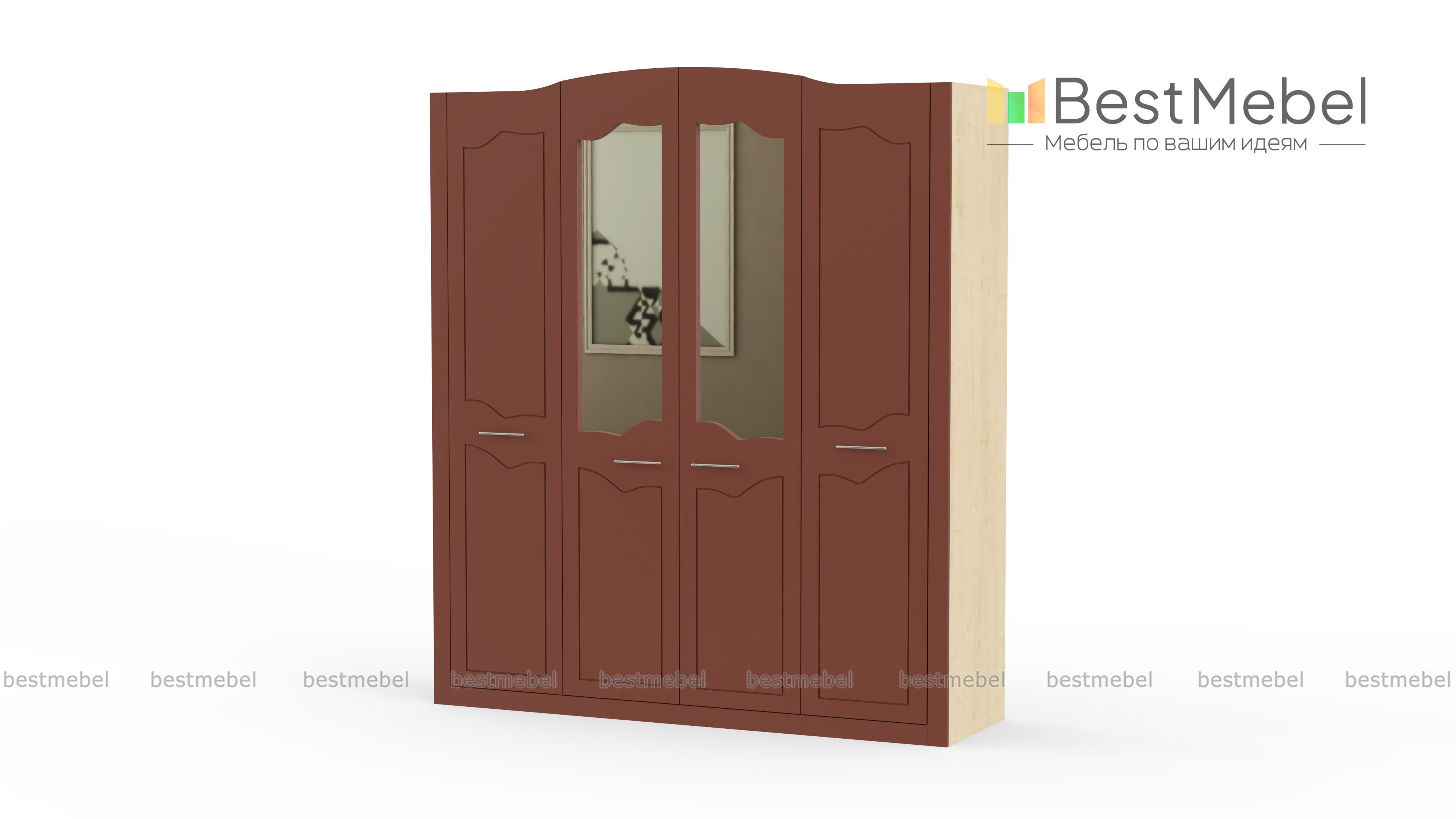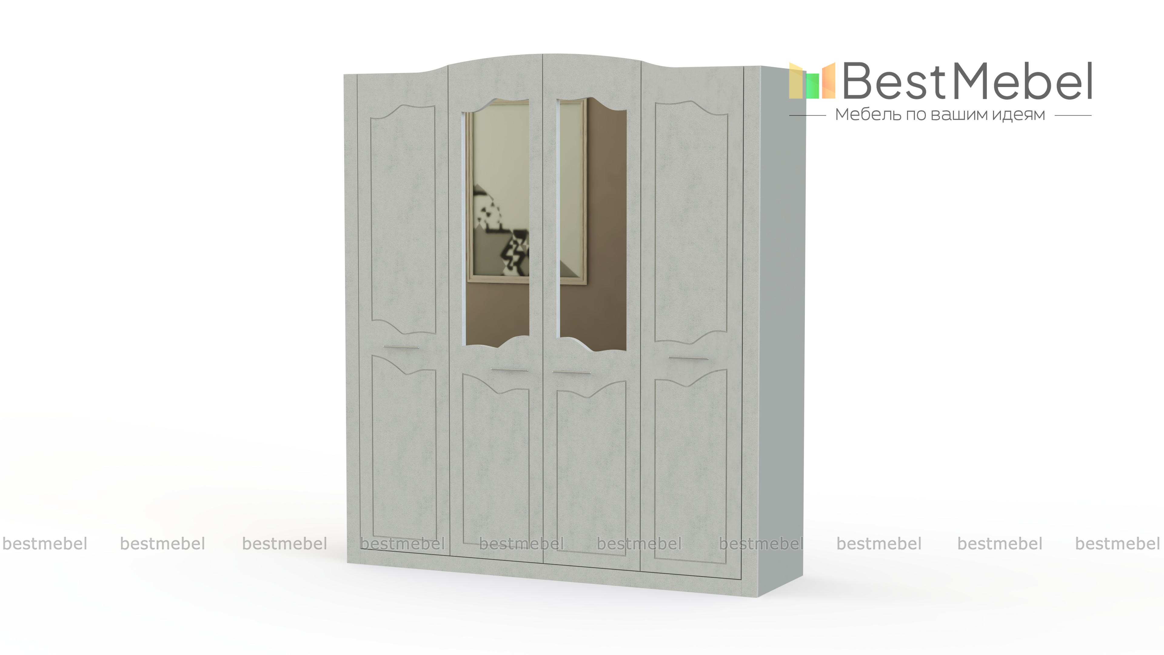 Шкаф 4-х дверный Ева-10 BMS отличают визуальная легкость и сдержанный классический декор. Крупногабаритная модель в светлых тонах дополнит комфортную спальню или гардеробную, организует хранение и станет украшением комнаты. Фигурно вырезанные дверцы декорированы фрезеровкой, а центральные дополнены зеркалами. За распашными дверцами – штанги и бельевое отделение с полками. Износостойкие и простые в уходе поверхности надолго сохранят эстетичный вид. Купить шкаф 4-х дверный Ева-10 BMS вы сможете в нашем интернет-магазине, подобрав необходимые параметры.