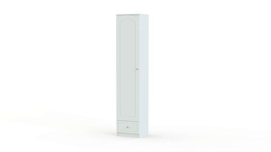 Шкаф Амалия СБ-986 левый BMS, выполненный в классическом стиле с характерным декором, станет практичным и изящным дополнением традиционного интерьера спальни или гостиной. Высокая узкая модель со светлыми фасадами, украшена фрезеровкой и миниатюрными ручками в тон. За распашной дверцей располагаются полка и штанга, в основании – выдвижной ящик для мелочей. Купить шкаф Амалия СБ-986 левый BMS по лучшей цене приглашаем в наш интернет-магазин.
