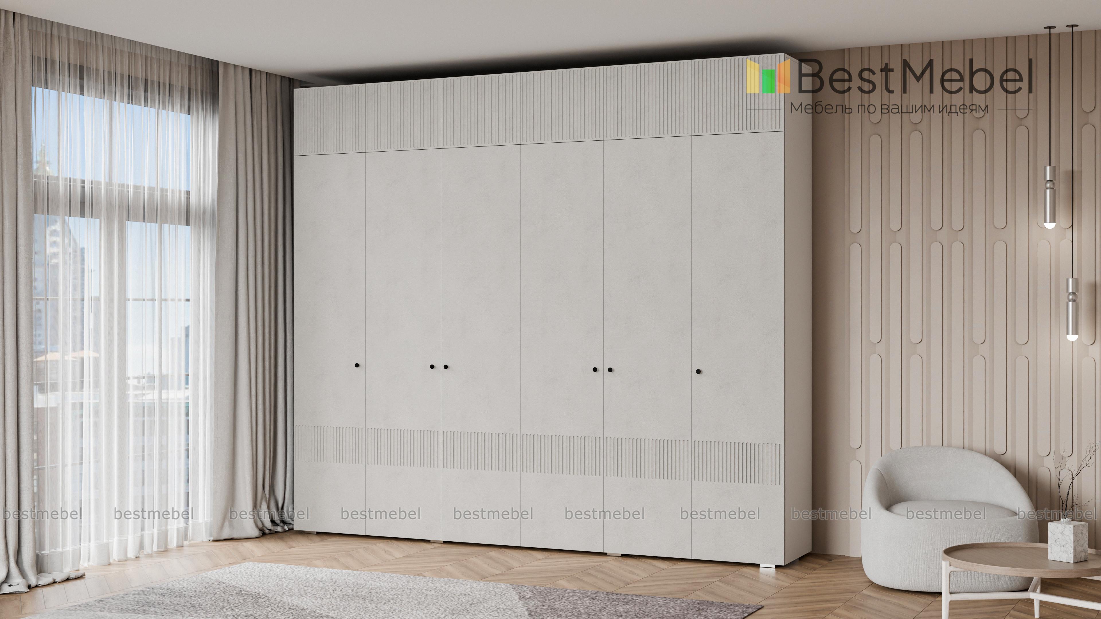 Шкаф распашной Джосс 12 BMS сохранит в порядке гардероб семьи. Шестидверная конструкция с двумя платяными отделениями, расположенными в центре, двумя бельевыми и вместительной антресолью оптимально подходит для хранения одежды и обуви двух человек. Выполненный в комфортной гамме, шкаф имеет стильную рельефную отделку по фасаду. Купить шкаф распашной Джосс 12 BMS вы сможете на сайте нашего интернет-магазина, подобрав нужные размеры, цвет и компоновку.