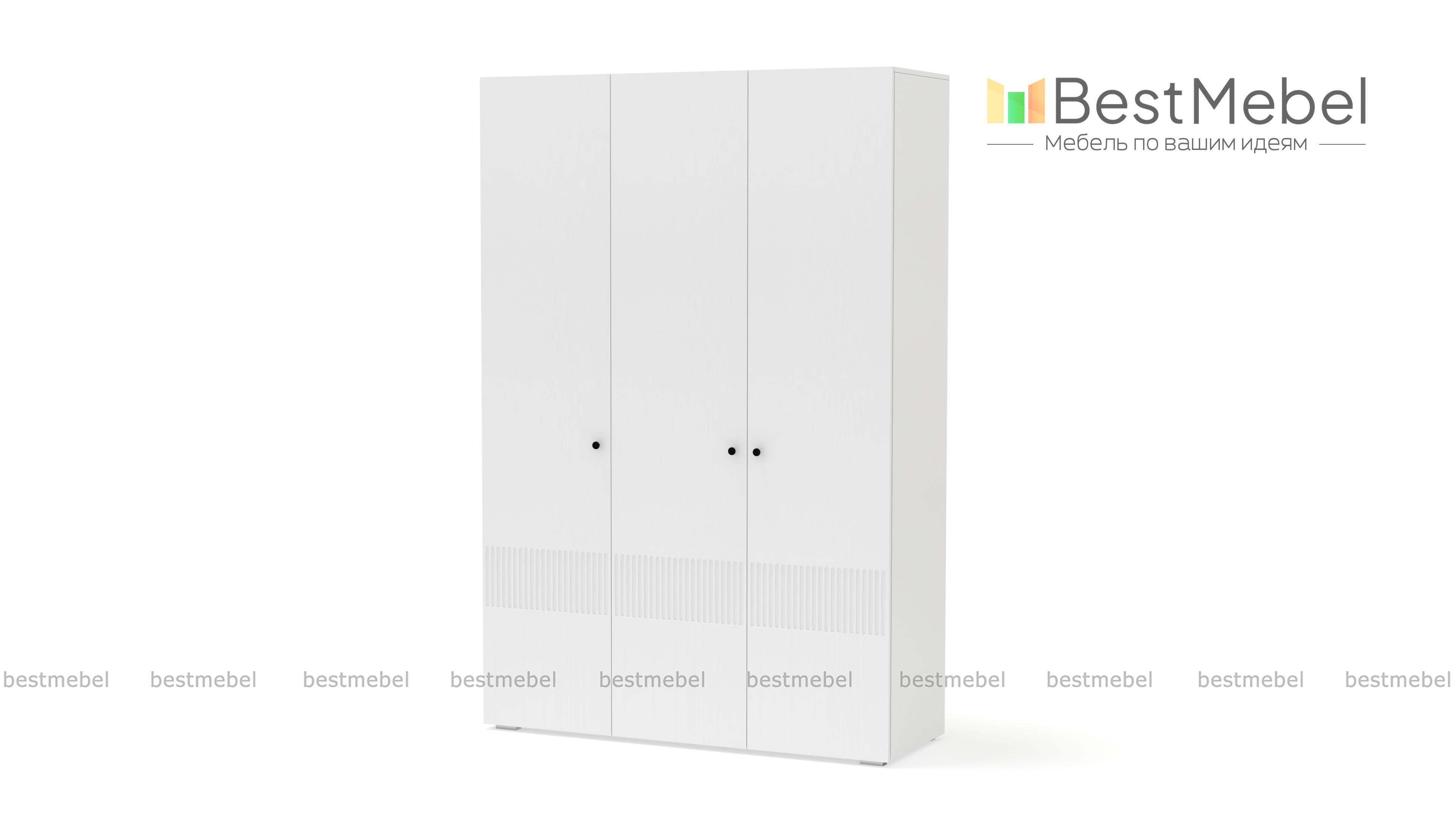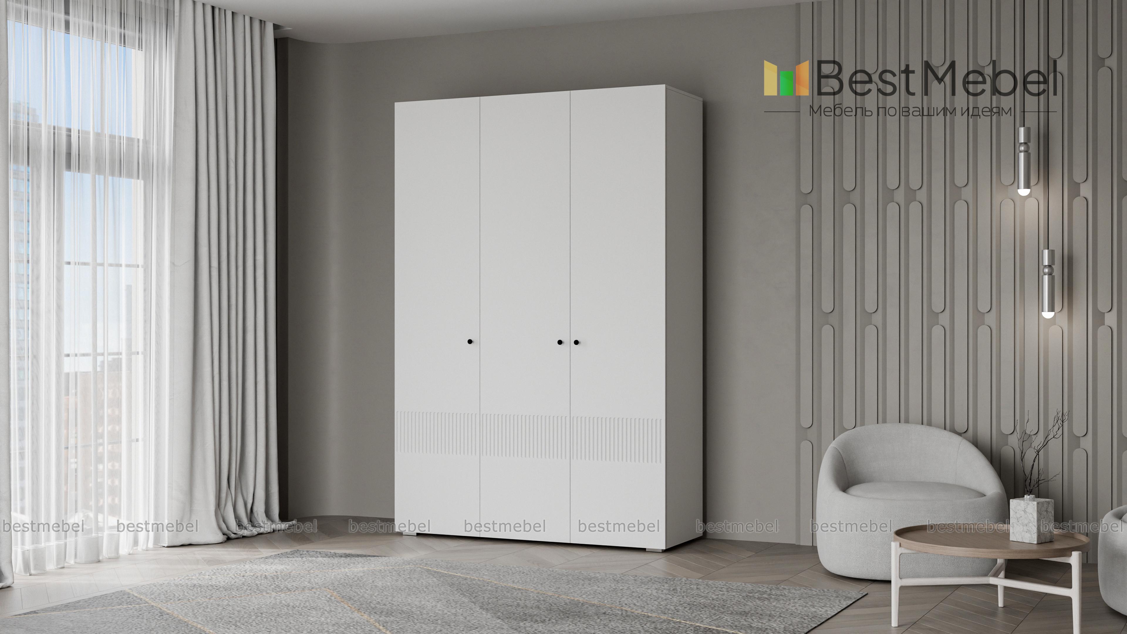 Шкаф распашной Джосс 3 BMS — компактный и стильный в двух актуальных оттенках. В отделке сплошного фасада, выполненного из устойчивой к повреждениям МДФ, использован оригинальный рельеф, дверцы легко открываются с помощью маленьких круглых ручек. Для разных вариантов хранения в трехдверной модели предусмотрены как штанга, так и секция с полками. Купить шкаф распашной Джосс 3 BMS с выбором размеров, цвета и фурнитуры вы сможете в нашем интернет-магазине.