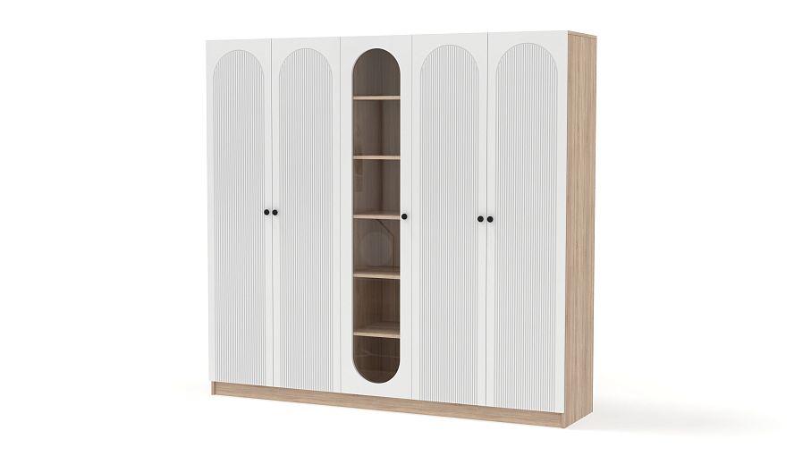 Шкаф распашной Рене 14 BMS с фактурными фасадами и большой овальной витриной в центре дополнит спальни и гостиные. Благодаря распашным створкам одежда хорошо просматривается, а на полках витрины будут на виду любимые книги, предметы коллекции и просто приятные мелочи. Материалы изготовления — ламинированная ДСП под древесный массив и МДФ. Купить шкаф распашной Рене 14 BMS можно на сайте нашего интернет-магазина в удобном размере и оттенках из каталога.