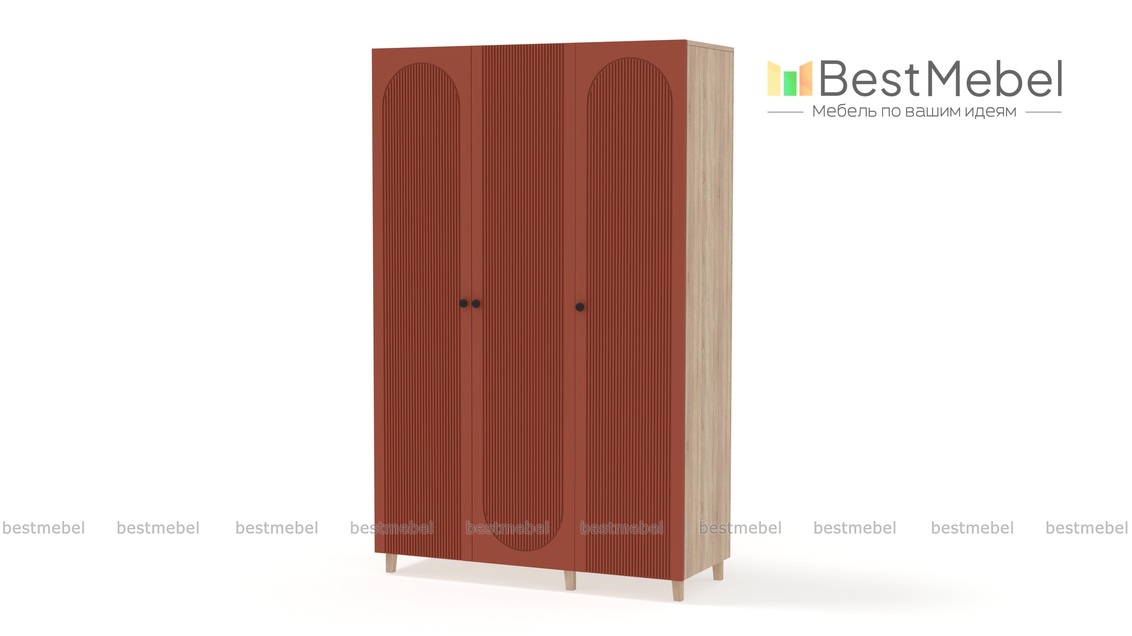 Шкаф распашной Рене 21 BMS в светлом оттенке станет универсальным выбором для разных по стилю интерьеров. Визуально легкая за счет высоких ножек конструкция имеет три распашные дверцы, за которыми скрыты платяная штанга и полки для одежды. Особенность дизайна этой современной модели — изящная фрезеровка фасада с полукруглыми вырезами. Купить шкаф распашной Рене 21 BMS вы сможете недорого в нашем интернет-магазине с индивидуальным подбором размеров, цвета и фурнитуры.