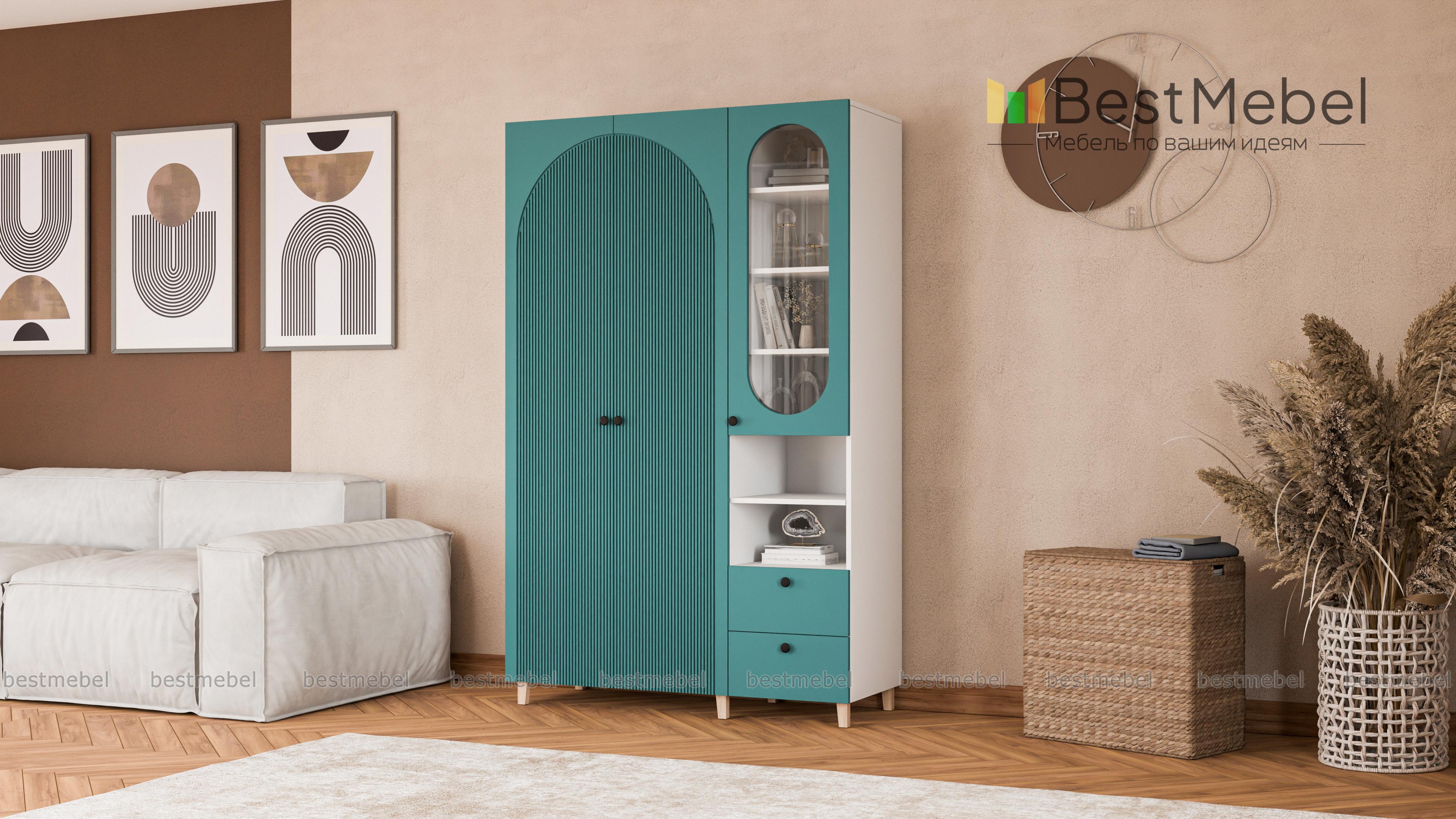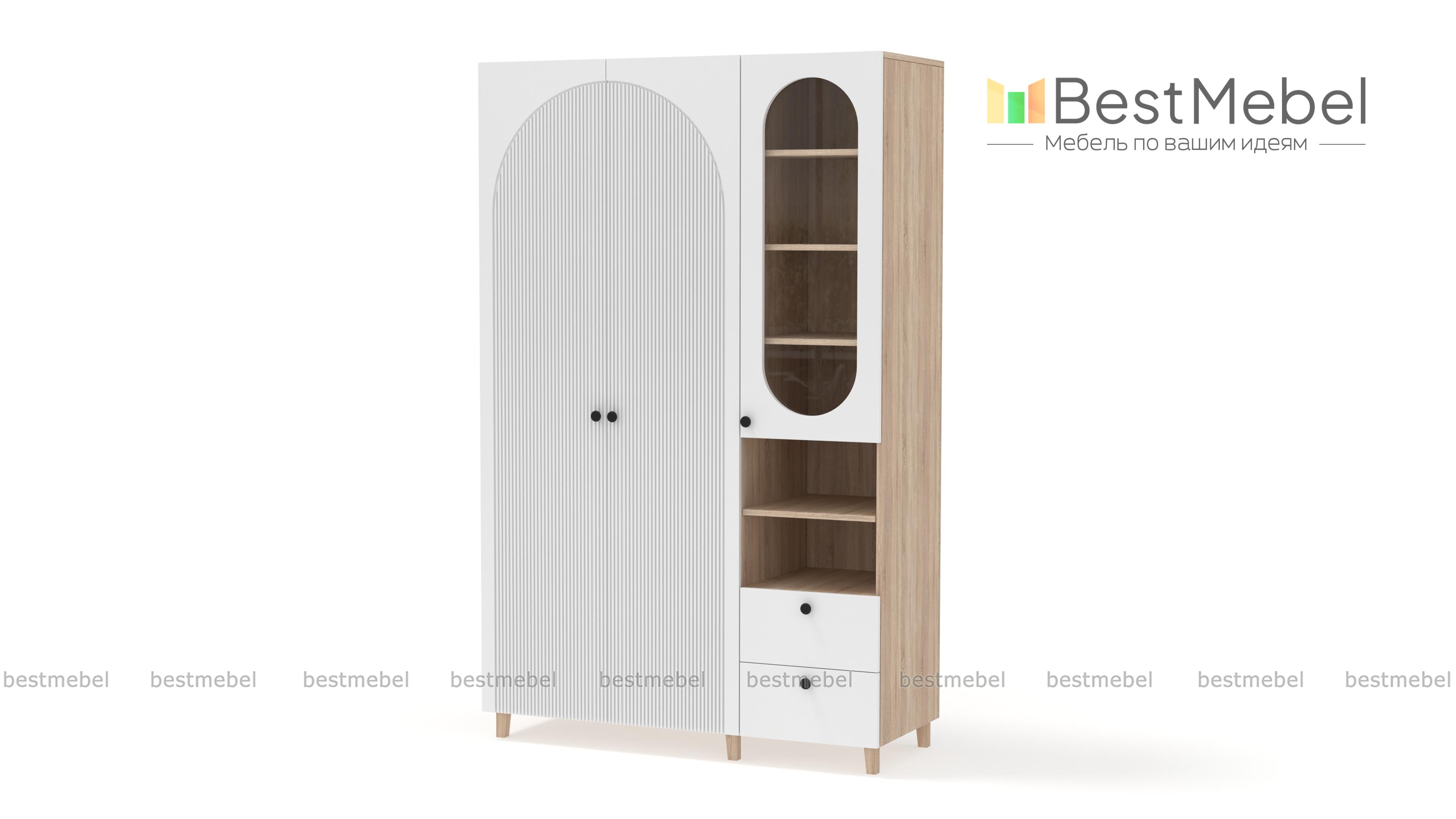 Шкаф распашной Вивьен 22 BMS на деревянных ножках — элегантный и функциональный. Грамотно организовать хранение помогут отделение со штангой, витрина, открытая секция с полкой и пара выдвижных ящиков. Универсальное цветовое решение шкафа сочетается практически с любой отделкой и декором, а полукруглые вырезы вносят в интерьер стильный акцент. Купить шкаф распашной Вивьен 22 BMS вы сможете в нашем интернет-магазине, по желанию изменив цвет и размеры.