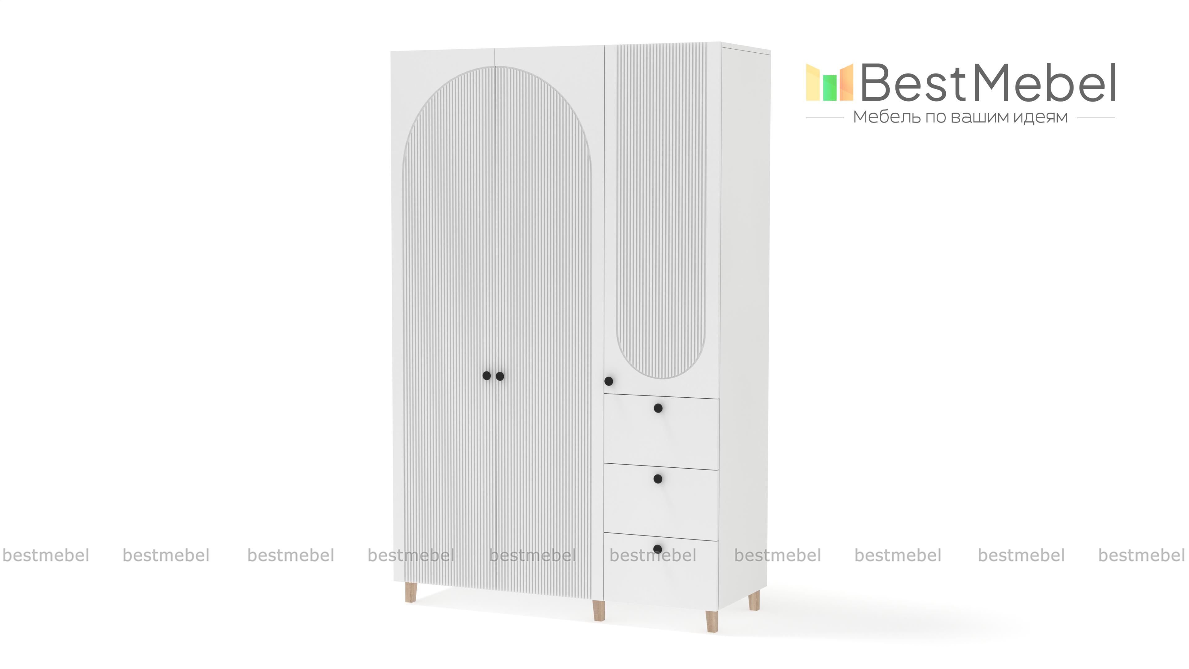 Шкаф распашной Вивьен 7 BMS можно использовать для хранения одежды и обуви, домашнего текстиля и всевозможных бытовых мелочей. Правильно подобранная комбинация включает в себя платяное и бельевое отделения, а также три выдвижных ящика. Глухой шкаф выглядит легким со светлым рельефным фасадом и высокими ножками в духе сканди. Купить шкаф распашной Вивьен 7 BMS вы сможете недорого в нашем интернет-магазине, самостоятельно подобрав размеры и оттенки по каталогу.