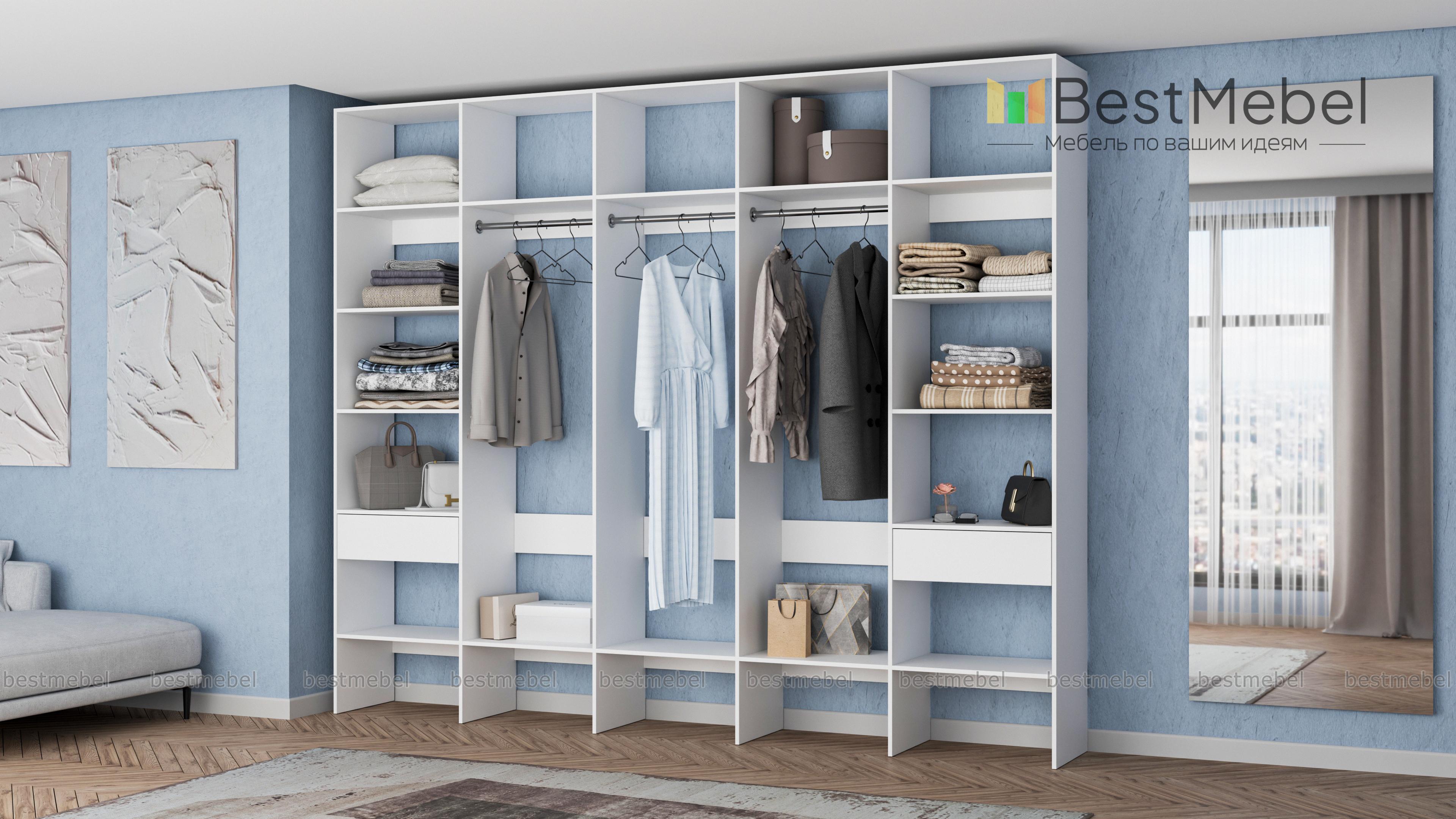 Стеллаж для одежды Мирта 69 BMS — это полноценная система хранения для просторной гардеробной. Три штанги в центре, полки по периметру и два выдвижных отделения обеспечивают быстрый доступ ко всем вещам: от сезонной одежды до мелких аксессуаров и средств ухода. Благодаря универсальному дизайну стеллаж гармонично вписывается в разные по стилю интерьеры. Купить стеллаж для одежды Мирта 69 BMS с индивидуальным подбором цвета и размеров вы сможете на сайте нашего интернет-магазина.