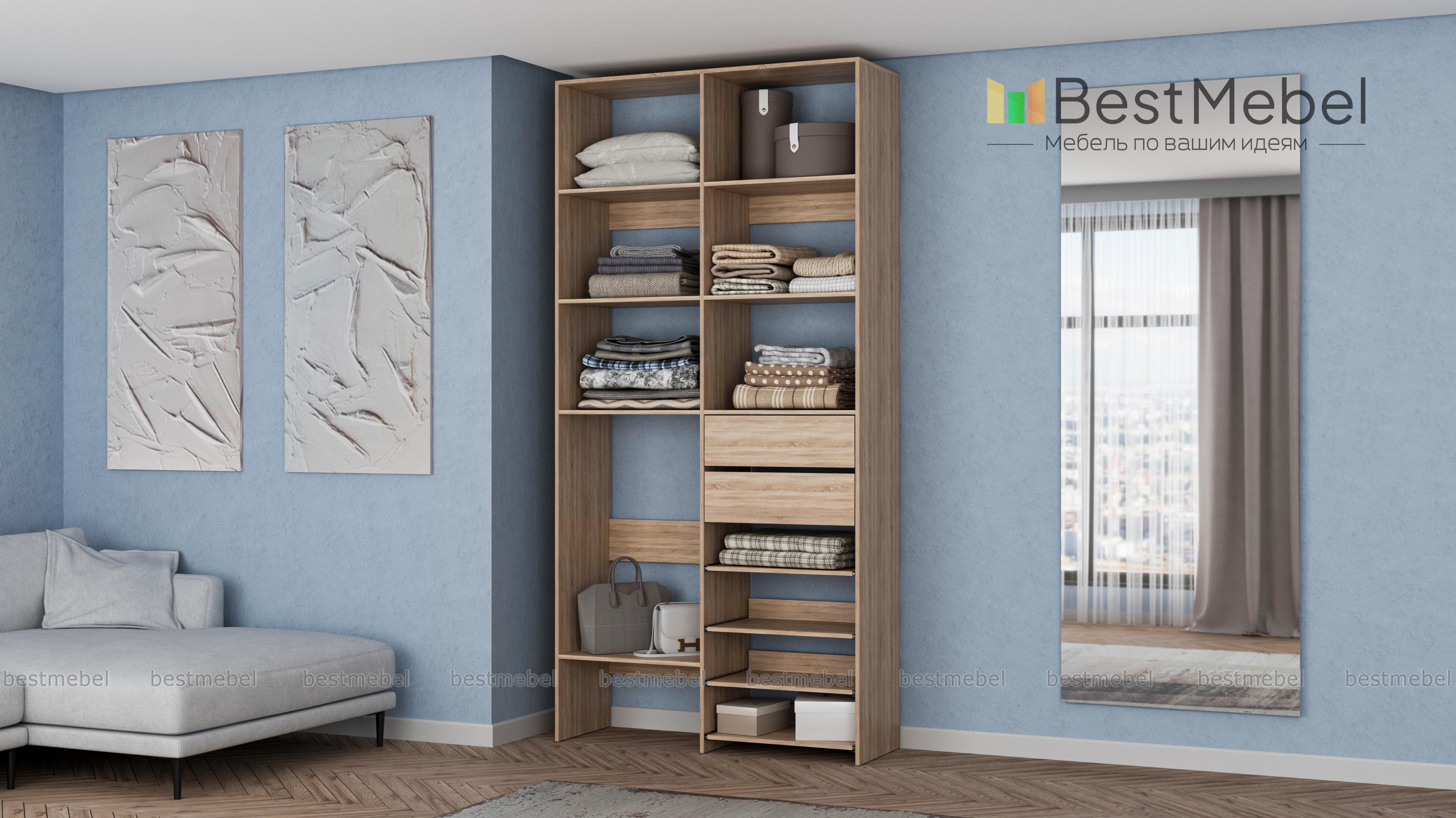 Стеллаж для одежды Мирта 86 BMS поможет вам легко избавиться от беспорядка. Секции разных размеров, два выдвижных ящика и четыре полки на направляющих прекрасно подойдут для хранения сложенной одежды, мелкого трикотажа, корзин и коробок с вещами. Благодаря скромным габаритам стеллаж легко поставить в нишу, разместить в маленькой прихожей или гардеробной. Купить стеллаж для одежды Мирта 86 BMS с выбором цвета и размеров приглашаем в наш интернет-магазин.