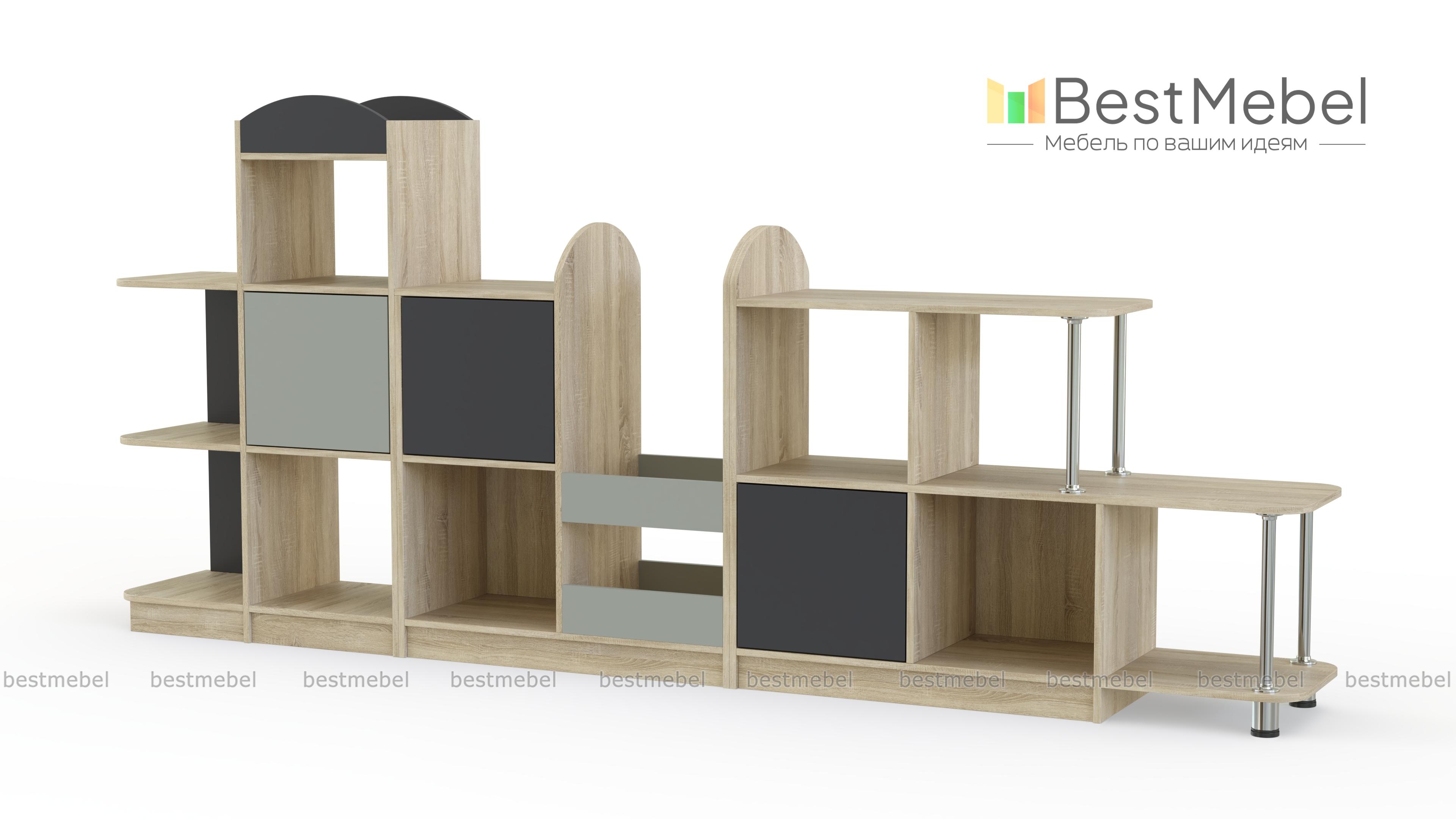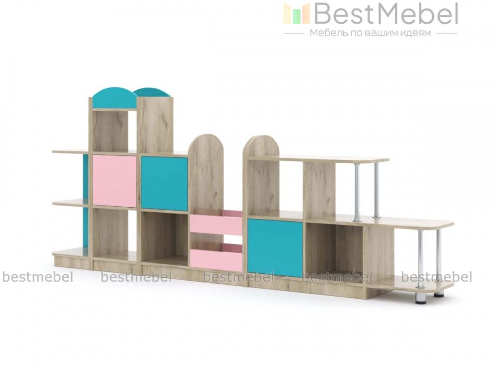 Стеллаж Полли 1 BMS – это игровая модульная стенка, которая поможет рационально организовать пространство. Композиция включает в себя модули разной высоты, оборудованные открытыми секциями, глухими распашными отделениями и полочками на хромированных опорах. Корпус стеллажа выполнен в светлых древесных тонах, а фасады с декоративными элементами – контрастные. Все углы стеллажа скруглены для безопасности. Купить стеллаж Полли 1 BMS для хранения книг и игрушек вы всегда сможете в нашем интернет-магазине.