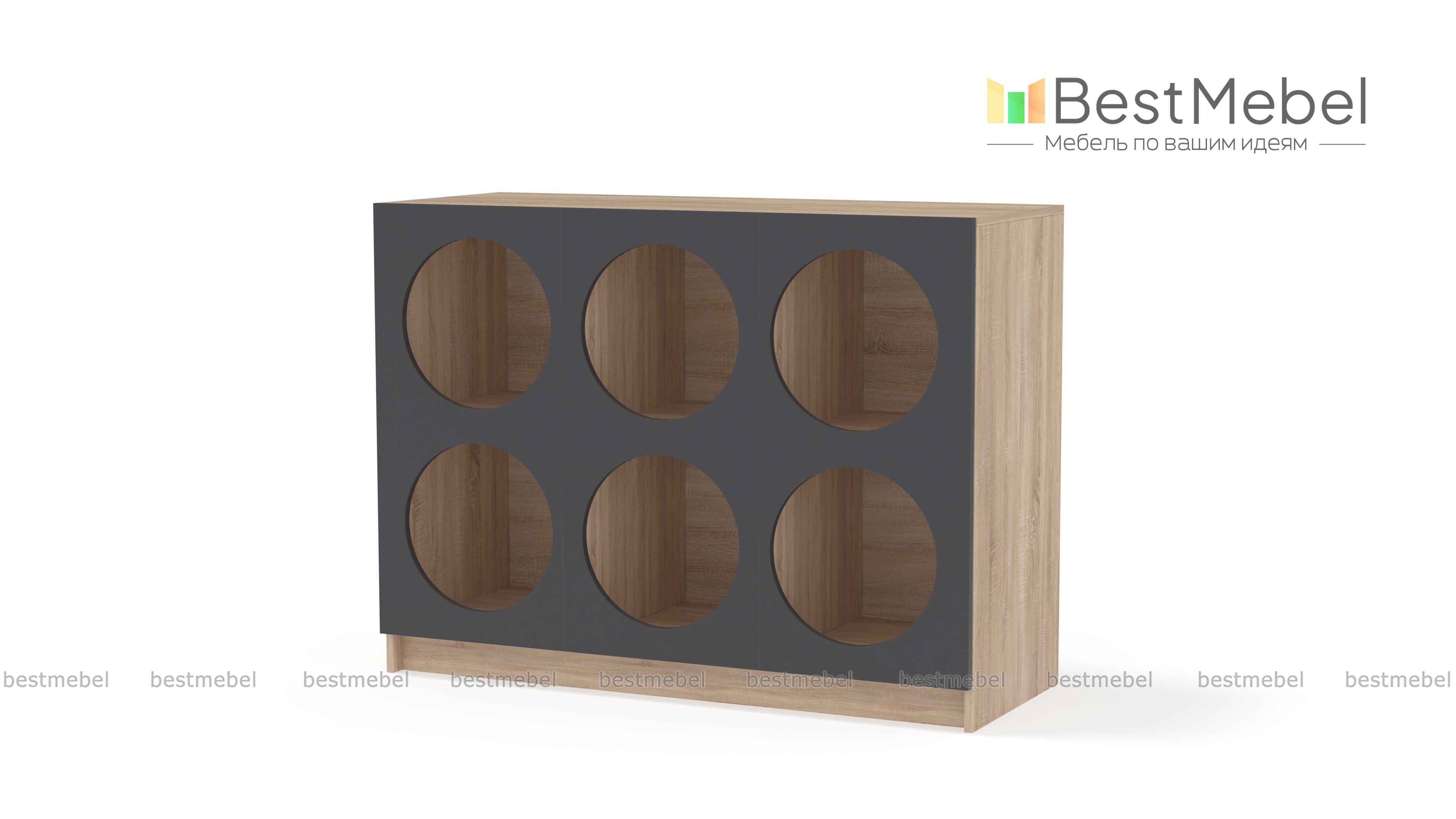Стеллаж Руди 7 BMS позволит вам интересно выставить книги, предметы коллекции, красивую посуду и другие вещи. Шесть вместительных полок имеют необычные круглые вырезы, превращая практичный предмет меблировки в стильный интерьерный акцент. На широкой верхней панели стеллажа достаточно места для ТВ, любимой вазы или уютного светильника. Купить стеллаж Руди 7 BMS вы сможете по доступной цене на сайте нашего интернет-магазина, подобрав цветовую гамму по своему вкусу.