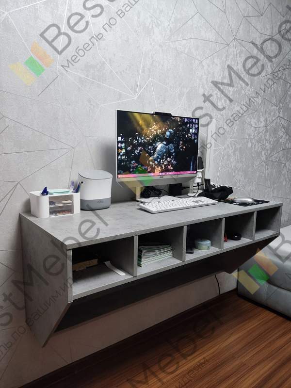 Заказ 00000298149, изделие Навесной письменный стол Хельга 1 BMS (1200х504х500)Дочке-подростку искали навесной письменный стол, но не просто плоскую доску, а функциональный с полочками. Стол МЕЧТЫ нашли на сайте Бест-Мебель. Особенно понравилось то, что при помощи программы-конструктора на сайте можно сконструировать мебель по своим размерам, цвету и прочим параметрам (добавить полочки или убрать их). Также съездили в мебельный торговый центр нашего города, где есть представитель компании Бест-Мебель. Там нам подтвердили, что заказать мебель сконструировав на сайте – это реально.В реальном виде мы этот стол на видели, отзывов на него на сайте не было. Но мы рискнули и заказали. Порадовало то, что полную оплату можно произвести после получения и проверки заказа. Это снижает риски получения некачественной продукции. За это отдельно спасибо Бест-Мебель!