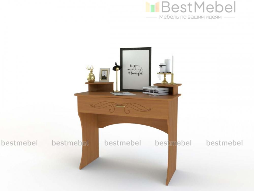 Туалетный столик Ленни 3 BMS станет практичным дополнением спального гарнитура в классическом стиле. Компактная по размеру, модель выполнена в теплых древесных тонах и украшена по фасаду изящной фрезеровкой. Под эргономично вырезанной столешницей располагается вместительный выдвижной ящик, а для необходимых под рукой мелочей предусмотрены угловые надстройки с нишами. Устойчивость конструкции обеспечивают фигурно вырезанные опоры. Купить туалетный столик Ленни 3 BMS приглашаем в наш интернет-магазин.