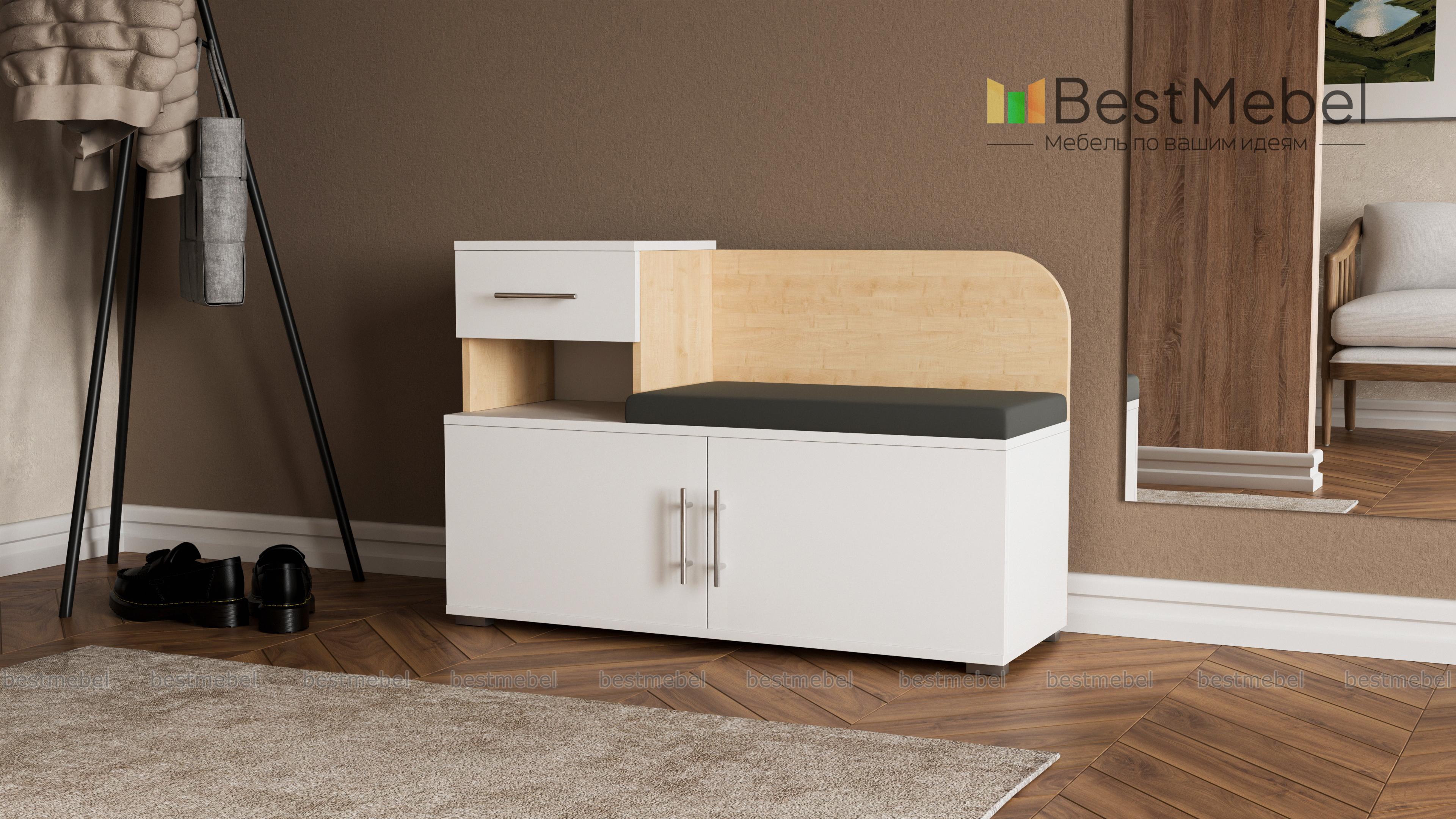 Тумба Аврора BMS – практичное дополнение меблировки прихожей. Компактная и функциональная, тумба оборудована просторным распашным отделением с полками, нишей, выдвижным ящиком и удобна для хранения сезонной обуви, средств по уходу и аксессуаров. Комфортным процесс надевания обуви сделает сиденье в мягкой тканевой обивке и высокая скругленная спинка. Износостойкие поверхности надолго сохранят эстетичный вид и не требовательны в уходе. Купить тумбу Аврора BMS приглашаем недорого в наш интернет-магазин.