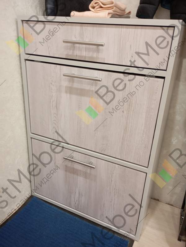 Тумба для обуви Лед 6 BMS органично дополнит популярные интерьеры в стиле минимализм. Удобная система хранения включает в себя два откидных отделения под обувь и выдвижной ящик для средств по уходу, аксессуаров и прочих мелочей. Корпус светлого древесного оттенка скомбинирован с серым глянцевым фасадом. Износостойкие поверхности не требовательны в уходе и надолго сохранят эстетичный вид. Купить тумбу для обуви Лед 6 BMS и дополнить прихожую практичной деталью вам всегда поможет наш интернет-магазин.