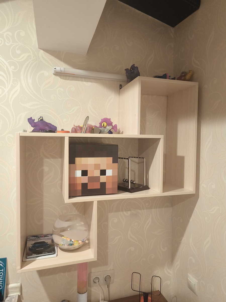 Хорошая полка. Выбирал сын. Хотелось необычную, удобную. Качество достойное. В сборке ничего сложного. Сделали по индивидуальным размерам. Цены хорошие