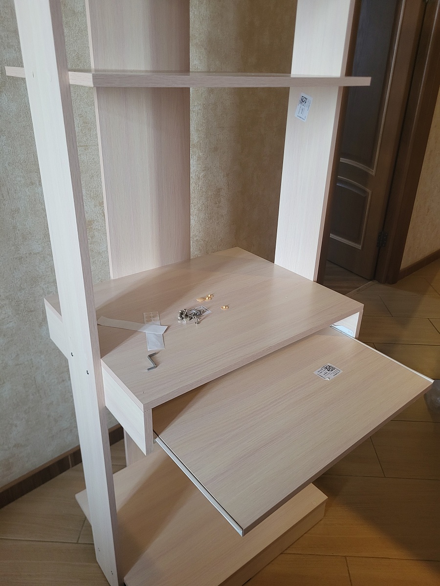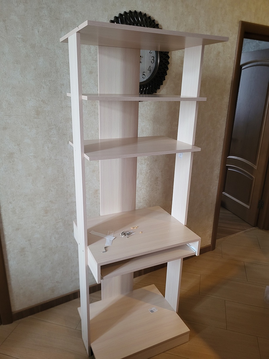 Из всех самых маленьких компьютерных столов выбрала этот,очень компактный, качество хорошее, сколов нет, цвет немного не тот,отдает розоватым,но в целом ноом