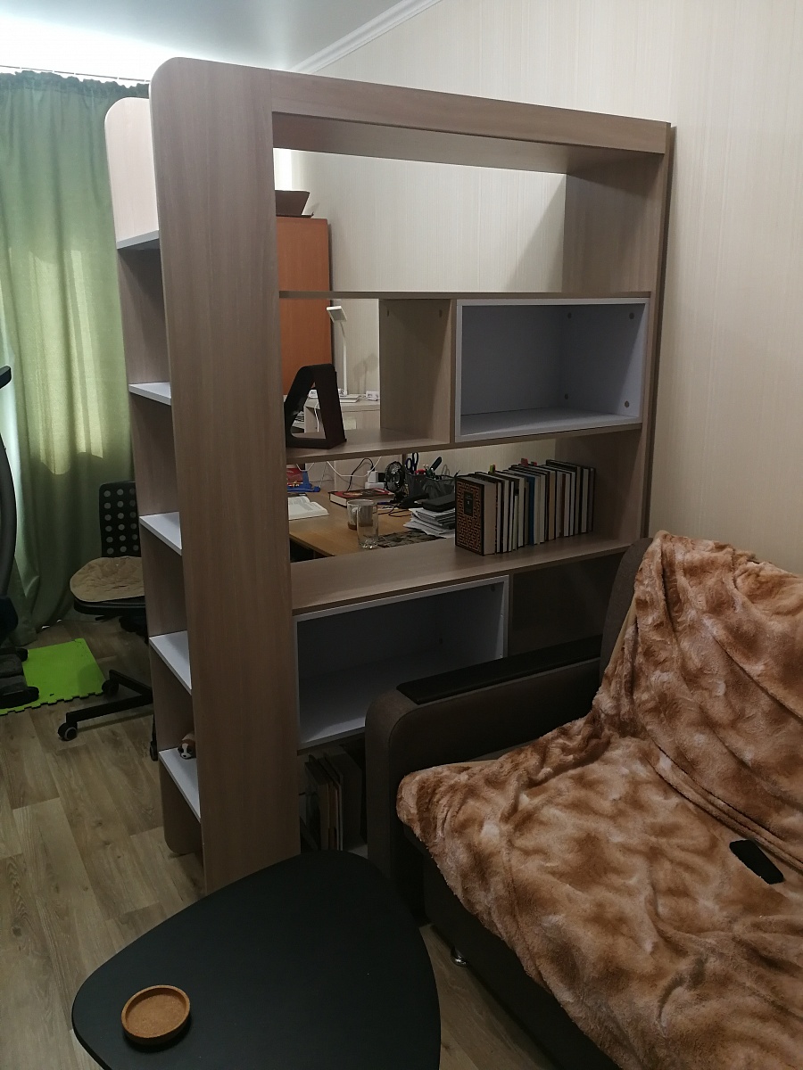 Заказ 00000763096, изделие ЭСКИЗ №00000763096 Стеллаж Спайк 4 BMS (400х2050х480)Прекрасный вместительный и функциональный стеллаж. Изготовили по нашим размерам и привезли быстро. Необходим был стеллаж-пристройка к имеющемуся шкафу. Своё назначение выполняет, пользуемся в течение месяца и очень довольны. Стеллаж стоит на ножках, что позволяет убрать под ним пыль. Выбранный цвет почти совпал с цветом нашего шкафа. Рекомендую к приобретению. Большим плюсом магазину то, что есть возможность заказать мебель необходимых именно вам габаритов.