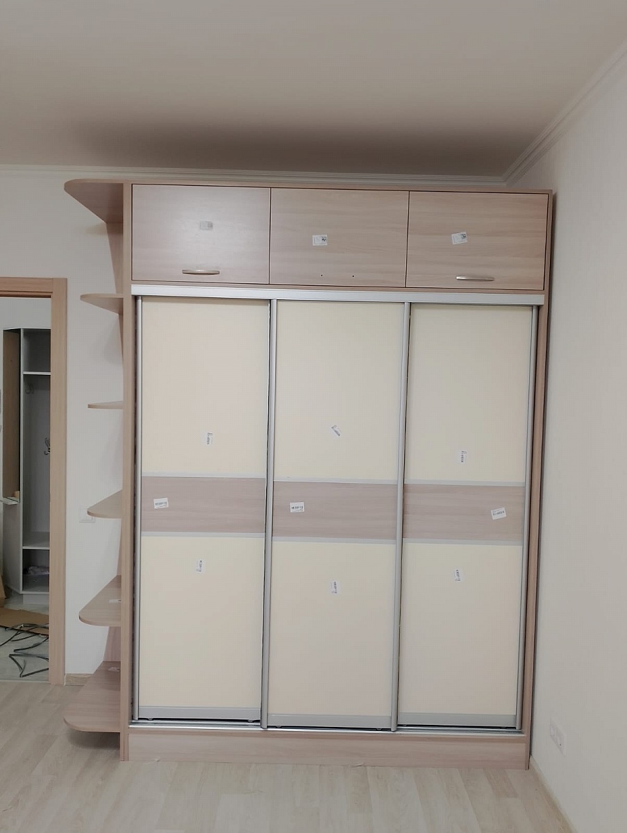 Заказ 00000724769,Распашной шкаф Комфорт BMS вместительный,разложила все вещи.Очень удобно,что можно выбрать цвет на свой вкус,фурнитуру и внутреннее наполнение изделия.Эскиз итоговый согласовали перед производством,заказ доставили быстро.