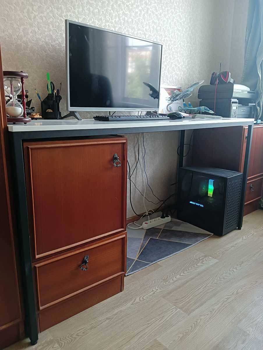 Заказ 00000689309.Качественный стол,для тех кто часто переезжает будет удобен при переезде.Метал крепкий,профиль не кривой.Возможность выбора размера изделия,позволяет разместить на нем все очень функционально.Рекомендую.
