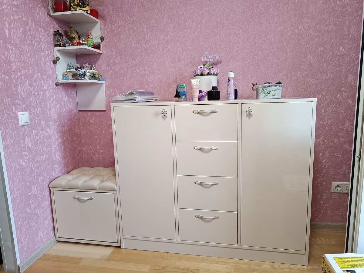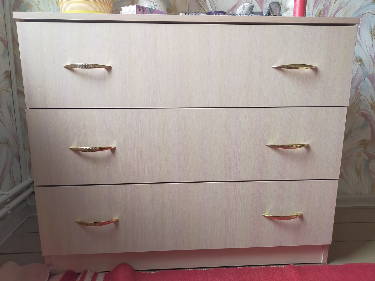 Хороший комод, с глубокими ящиками, заказывала полностью из МДФ, с глянцевым покрытием, ручки покупала самостоятельно!