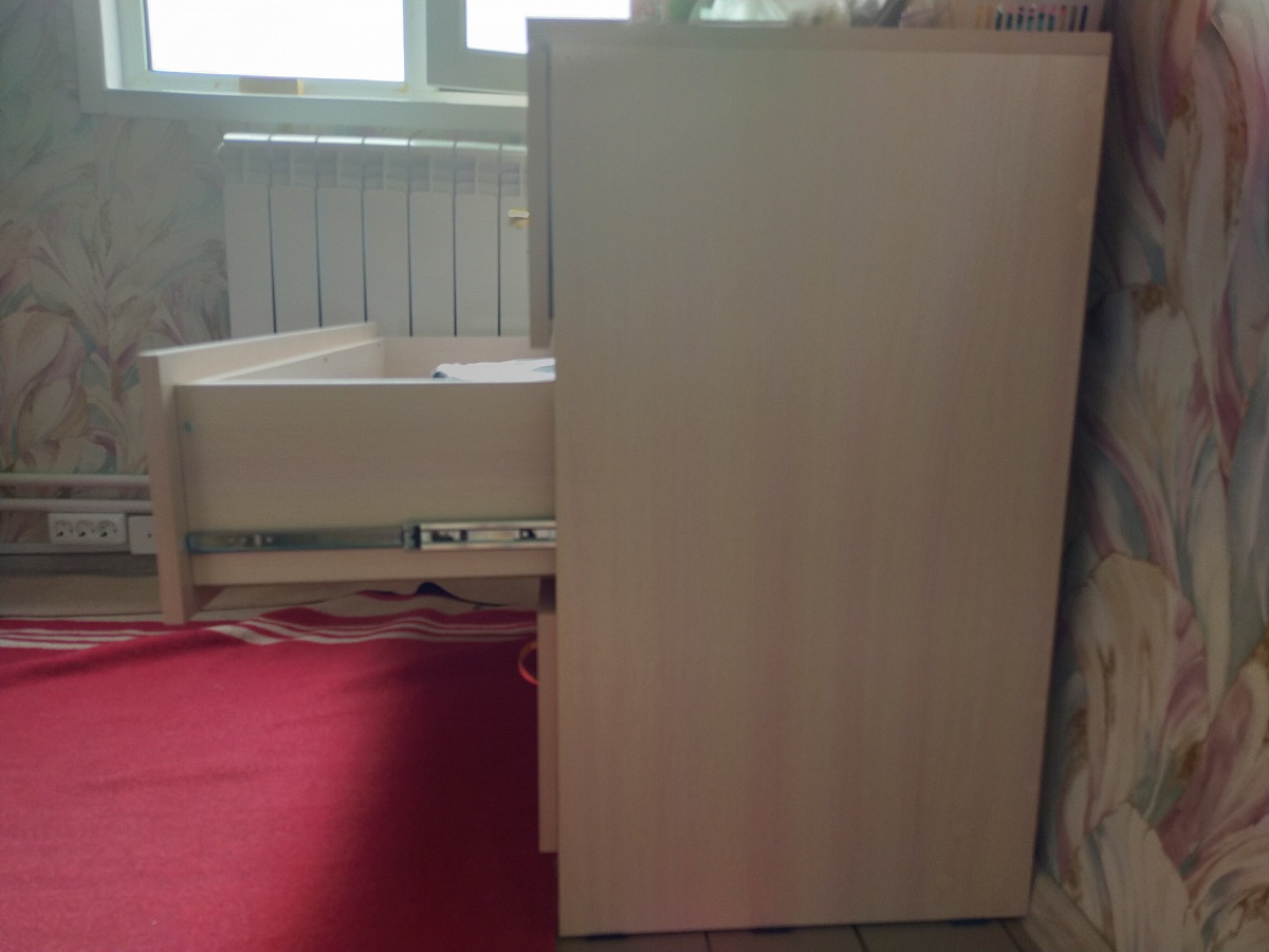 хороший комод. запаха почти не было. немного не устойчив, если выдвинуть все ящики начинает шататься. взяла другие направляющие, тк ящики тяжелые. собирается легко