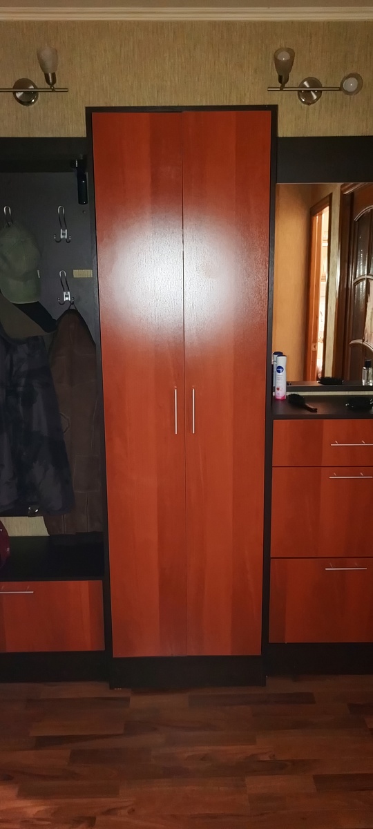 Прихожая отличная, всё устраивает. Внесли все мои пожелания и дополнения при изготовлении. Обошлась в 23.400 + подъём + 13% собиралась вертикально,т.к. места мало было.