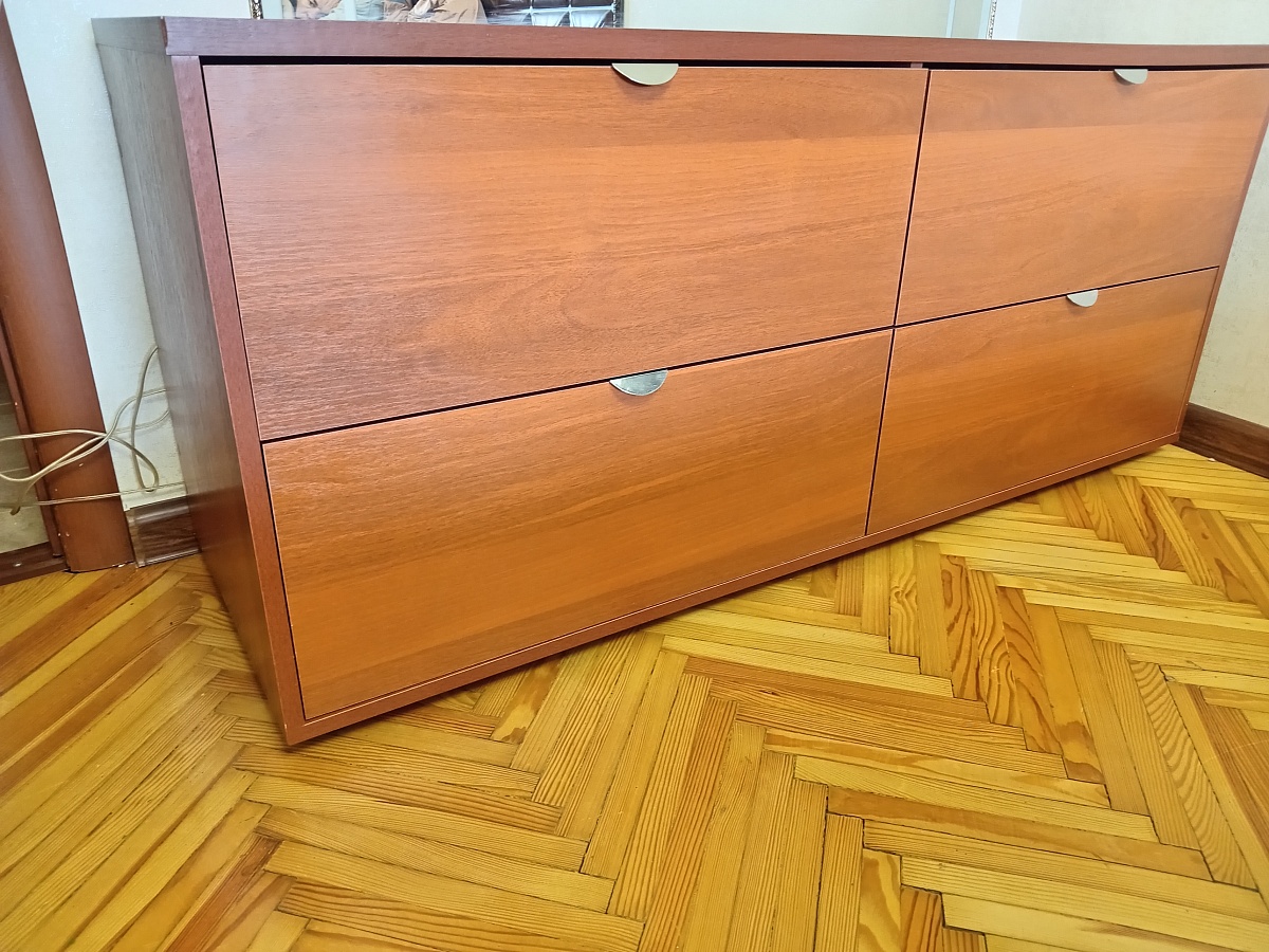 Заказ 00000635793, изделие Комод Нордмела Nordmela 1 (1390х600х450). Все прошло на отлично, доставка вовремя, оплата по факту доставки, сборка не вызвала затруднений. Комод  эксплуатируется в течение 2 месяцев, нареканий к качеству нет. Дизайном, ценой и функциональностью комода были довольны изначально.