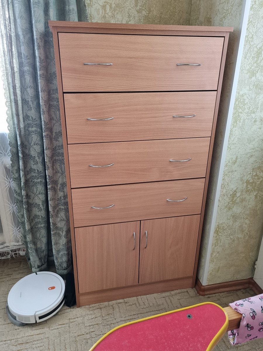 Про товар: Внешне выглядит очень хорошо, прям цена/качество отличные. Есть до чего докопаться, но что бы этого не было ценник должен быть раза в 3 дороже.Про сборку: если сам не собирал ни когда комоды - то лучше и не пробовать. Инструкции икеевской нет, есть схема где какая деталь должна быть, все детали подписаны, но я бы не справился. Сборщик от этой компании был отличный, вежливый, очень внимательно и аккуратно собирал.Про компанию:Не слышал о них, но оказались очень хороши, всё чётко, видимо поток и справляются хорошо.Был инцидент при сборке, заменили крышку за неделю(сразу опись, через неделю новая крышка, через день установщик заменил). Осадка после этого нет, т.к. всё чётко заменили.Итог:Цена отличная, качество хорошее, сервис отличный. В след раз буду в первую очередь у них смотреть мебель.