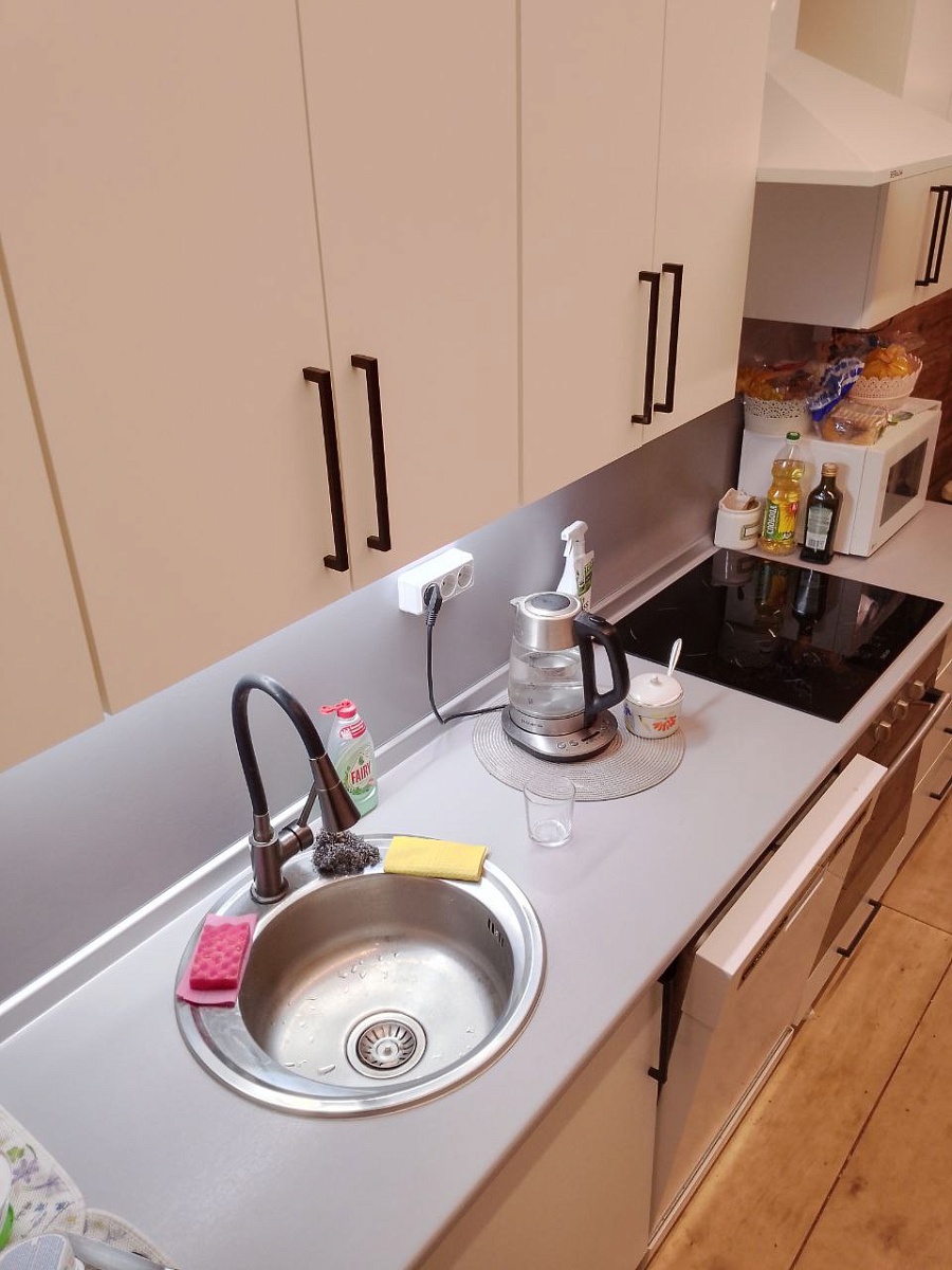 Белые фасады полностью преобразили кухню. Стало светло, визуально больше пространства. Практично, царапины и загрязнения почти незаметны, легко отмываются. Рекомендую!