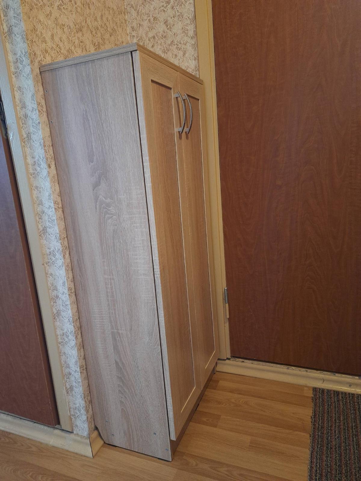 Купил стеллаж в маленькую комнату под всякую всячину, размер выбрал 2400*1400*330. Привезли вовремя, все в комплекте, всего хватило, собрал сам. Петли с доводчиком мягко закрывают, ножки регулируются по высоте. В комплекте 4 уголка для крепления к стене. Из минусов могу выделить что маскировочные наклейки для конфирматов не попадают в цвет. В целом доволен