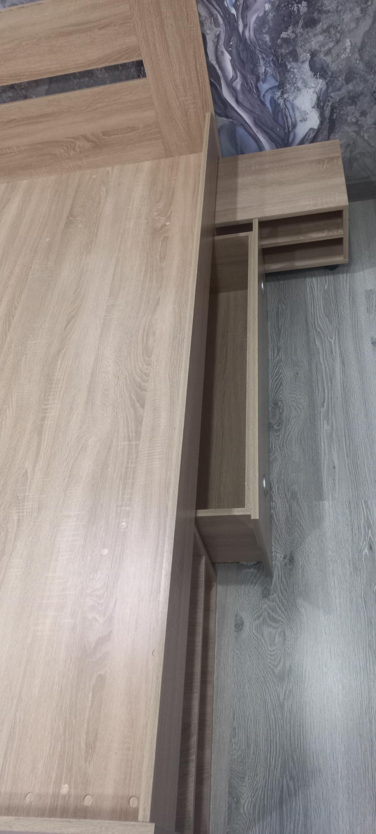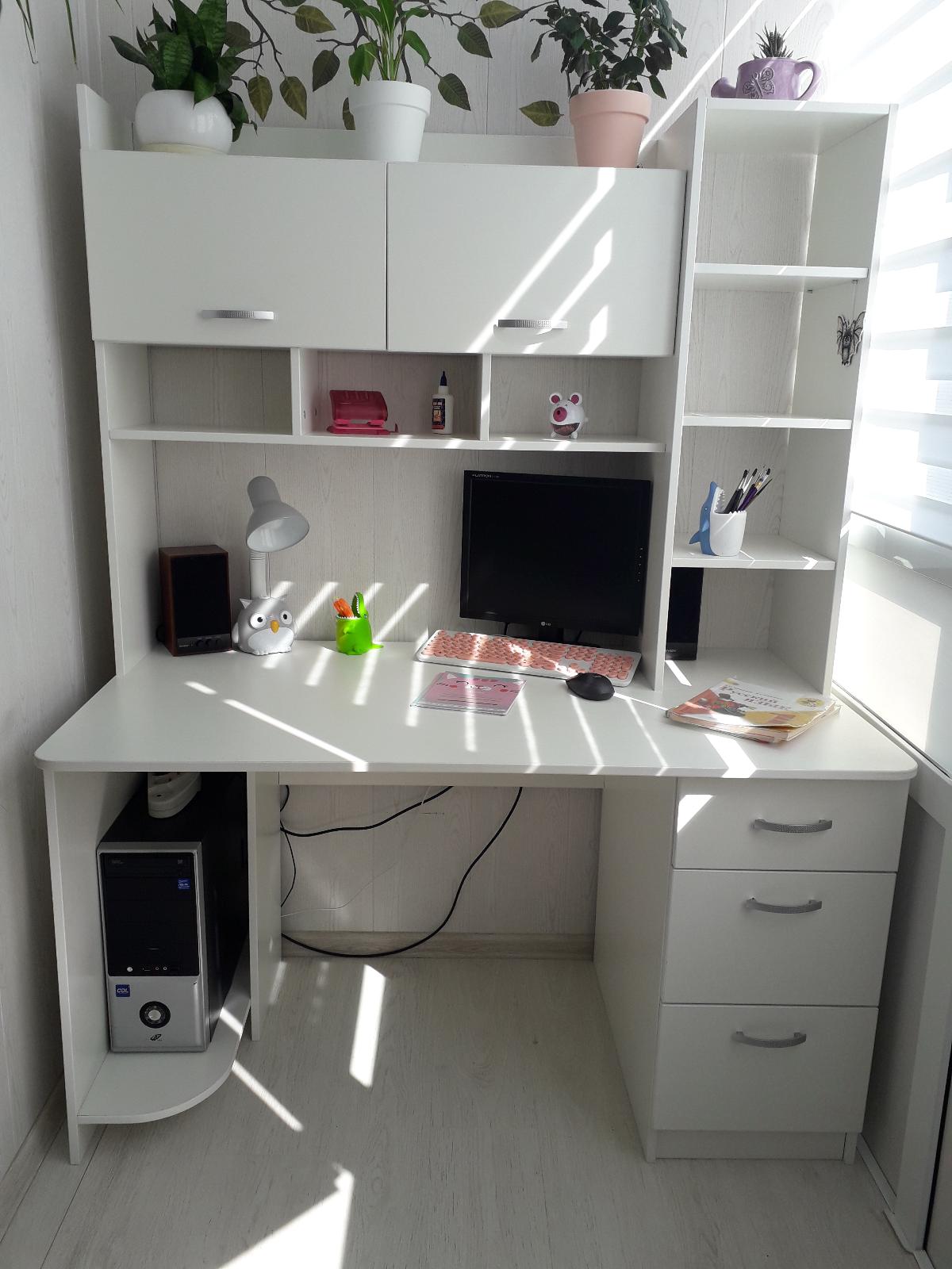 Почему заказала стол здесь? Потому что есть возможность задать свои размеры,  выбрать необходимый, по стилю, цвет. Стол получился с хорошей, большой рабочей поверхностью. Но есть недостатки. Во-первых, дверные петли не очень хорошего качества. Во-вторых при распиле полотен, кое где есть сколы, которые не закрылись кромкой. В-третьих,  ящик сейф, вовсе не сейф, а просто лист двп вырезанный под размер ящика и вставляется сверху на вкрученные болтики. Я думала там будет спец.механизм, который позволит открывать потайное дно. Так что деньги на ветер.А в остальном стол отличный, крепкий, вместительный.  Взрослое компьютерное кресло заходит в проем между тумбой и блоком питания, это было для нас тоже важно.Из пожелания : доработайте, пожалуйста,  инструкцию по сборке. То что прислали, на инструкцию совсем не похоже. В остальном,  спасибо!