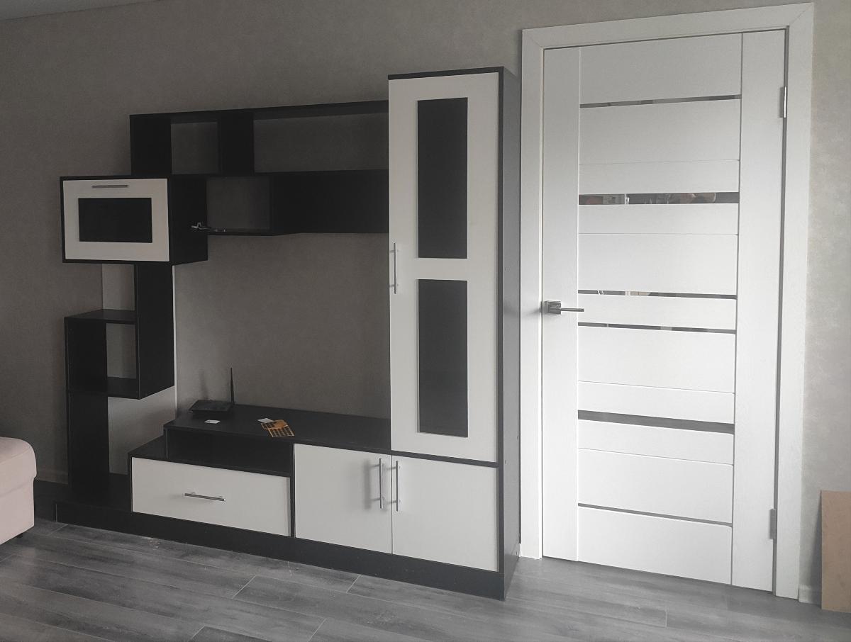 Цвета Черный/Белый (структура дерева). Имейте ввиду, что стоковый белый немного теплит. Сразу определитесь с диагональю ТВ. В целом очень довольны, фурнитура качественная, мастер от магазина все быстро и аккуратно собрал, еще и упаковку аккуратно сложил. Спасибо всем сотрудникам.