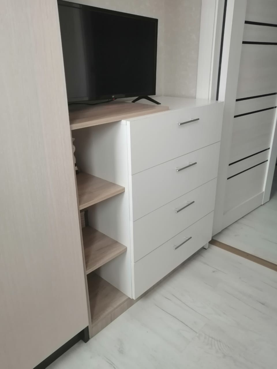 Спасибо Бестмебель за отличный комод. Очень приятная расцветка (её можно выбрать любую, исходя из Вашего дизайна и интерьера). Достаточно вместительный, есть открытые полки. Качество материала хорошее. Прост в сборке (собрали сами). Доставка была быстрой.