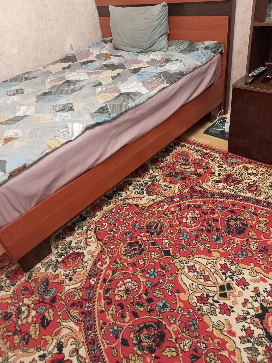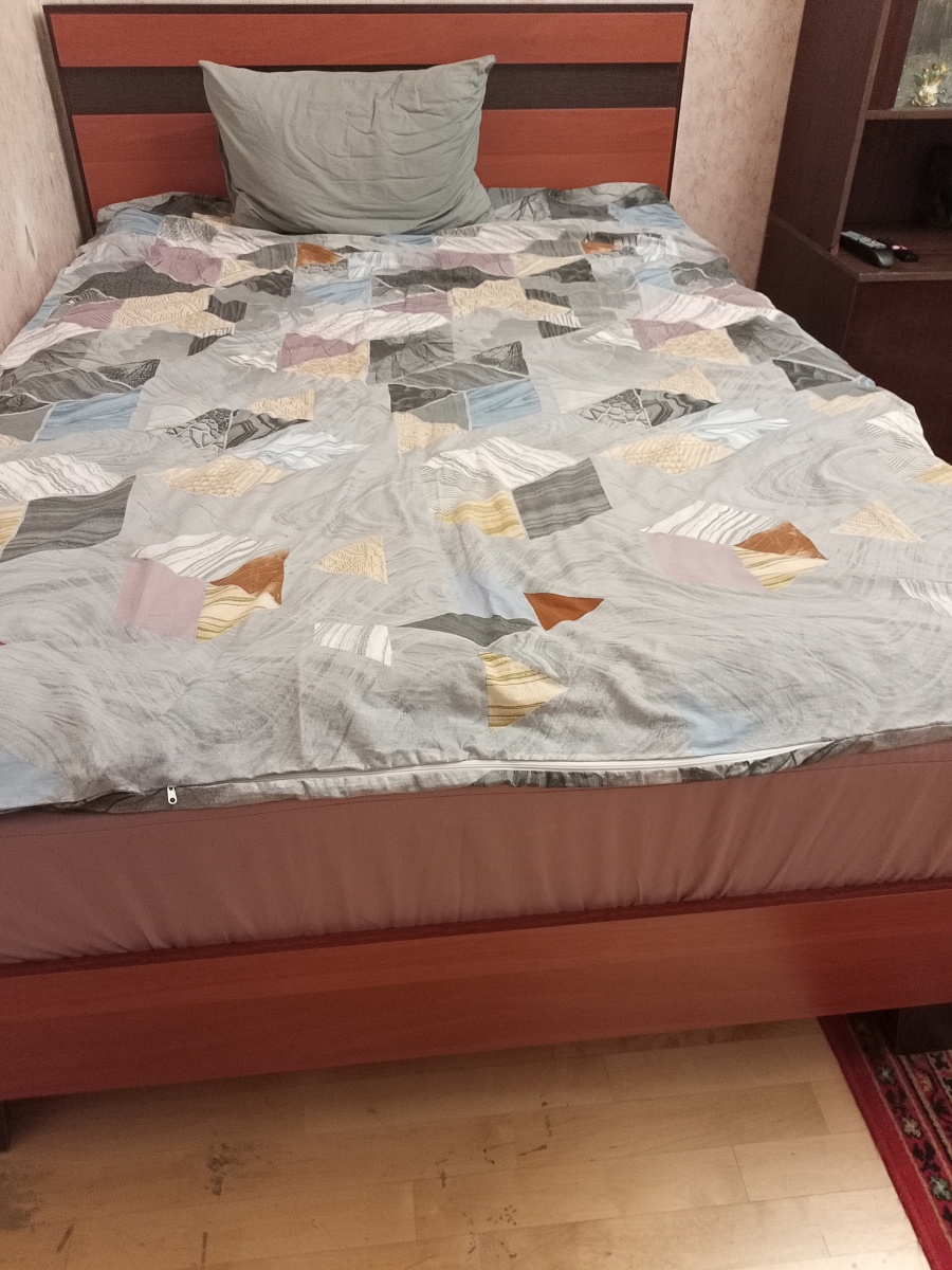 Хорошая кровать,устойчивое основание,высокая спинка позволяет находясь в кровати читать ,смотреть телевизор.Расстояние между полом и основанием кровати позволяет производить уборку под кроватью .Доставка вовремя ,сборка качественная.Спасибо производителям и всем службам .