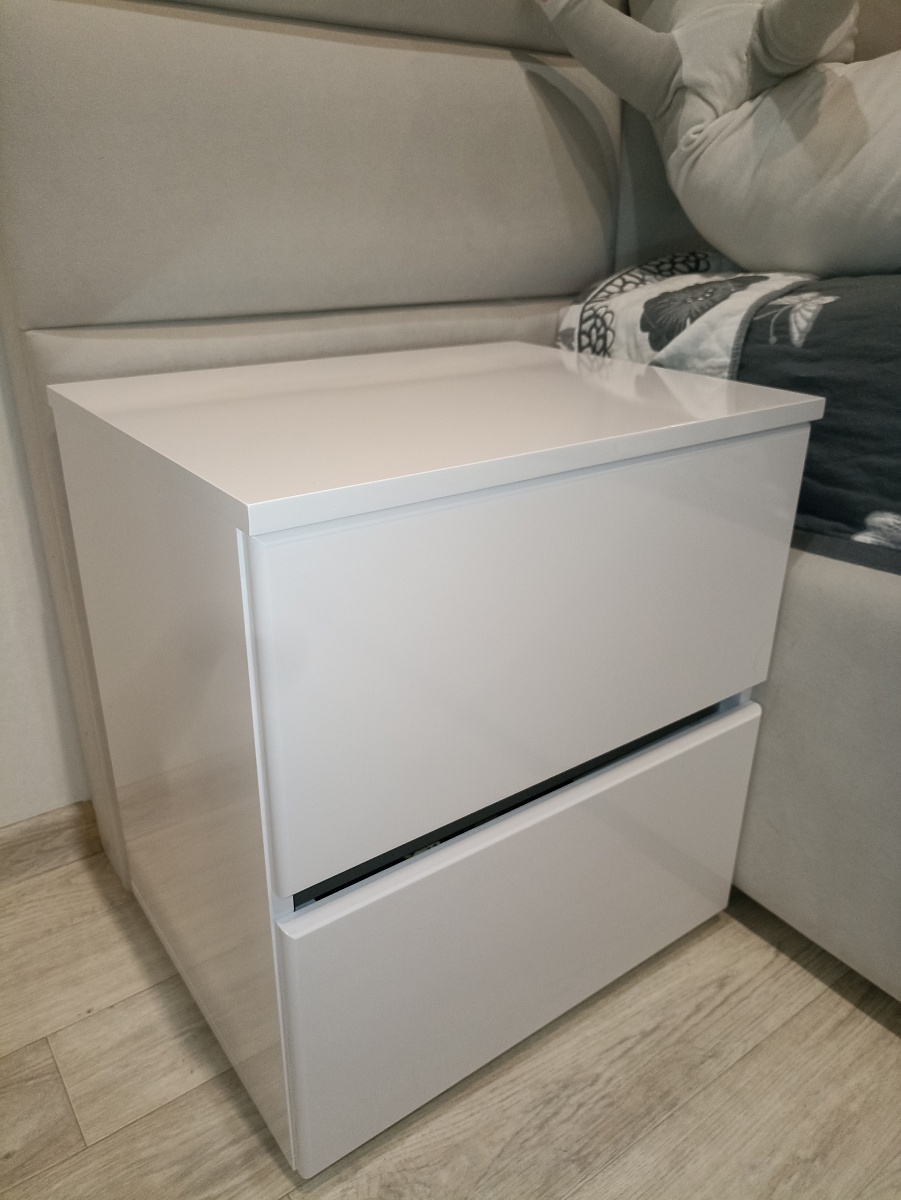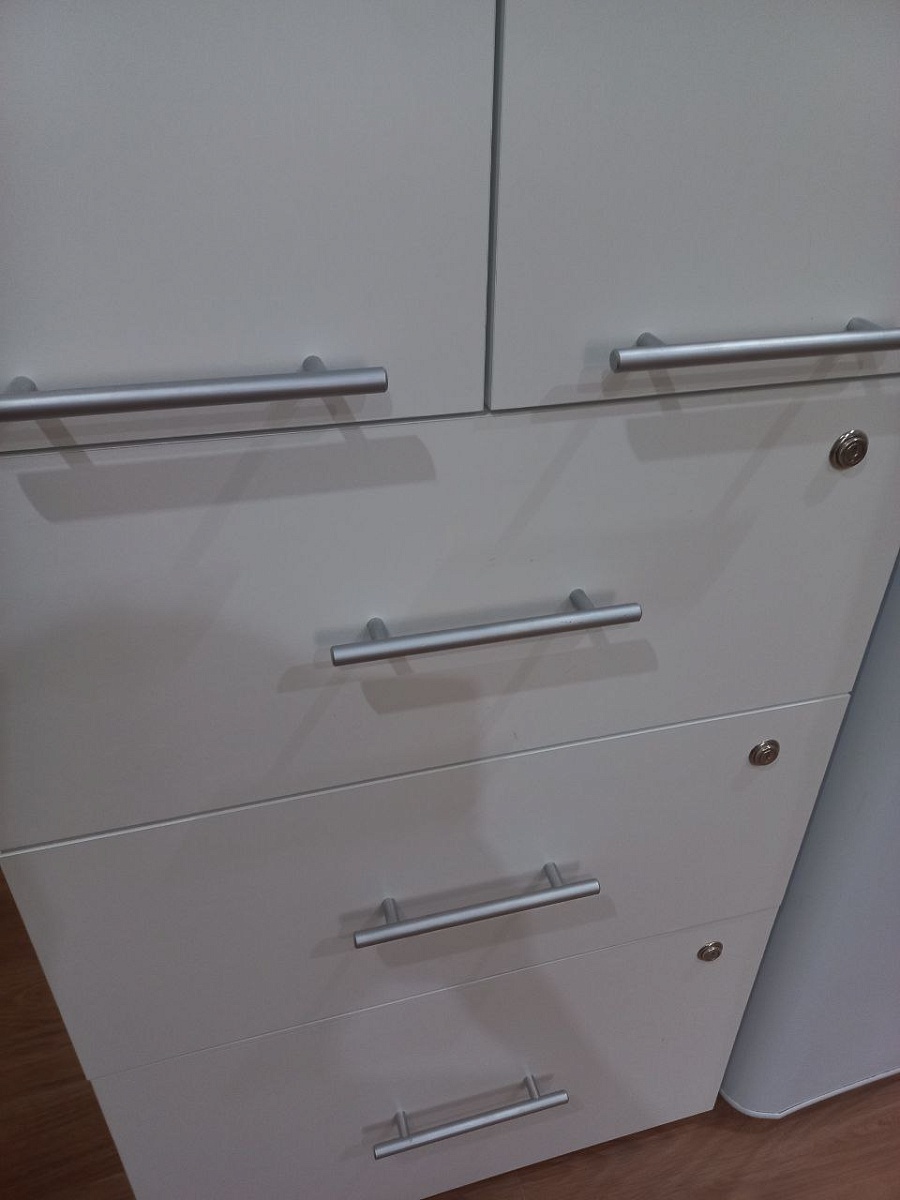 Хороший качественный шкаф (993791), собрали быстро, трудности в сборке не возникло. Замки на ящиках работают, направляющие скрытого монтажа тоже хорошо работают. Удобно что можно переставлять полки на необходимую высоту. Кромка приклеена качественно, придраться не к чему.