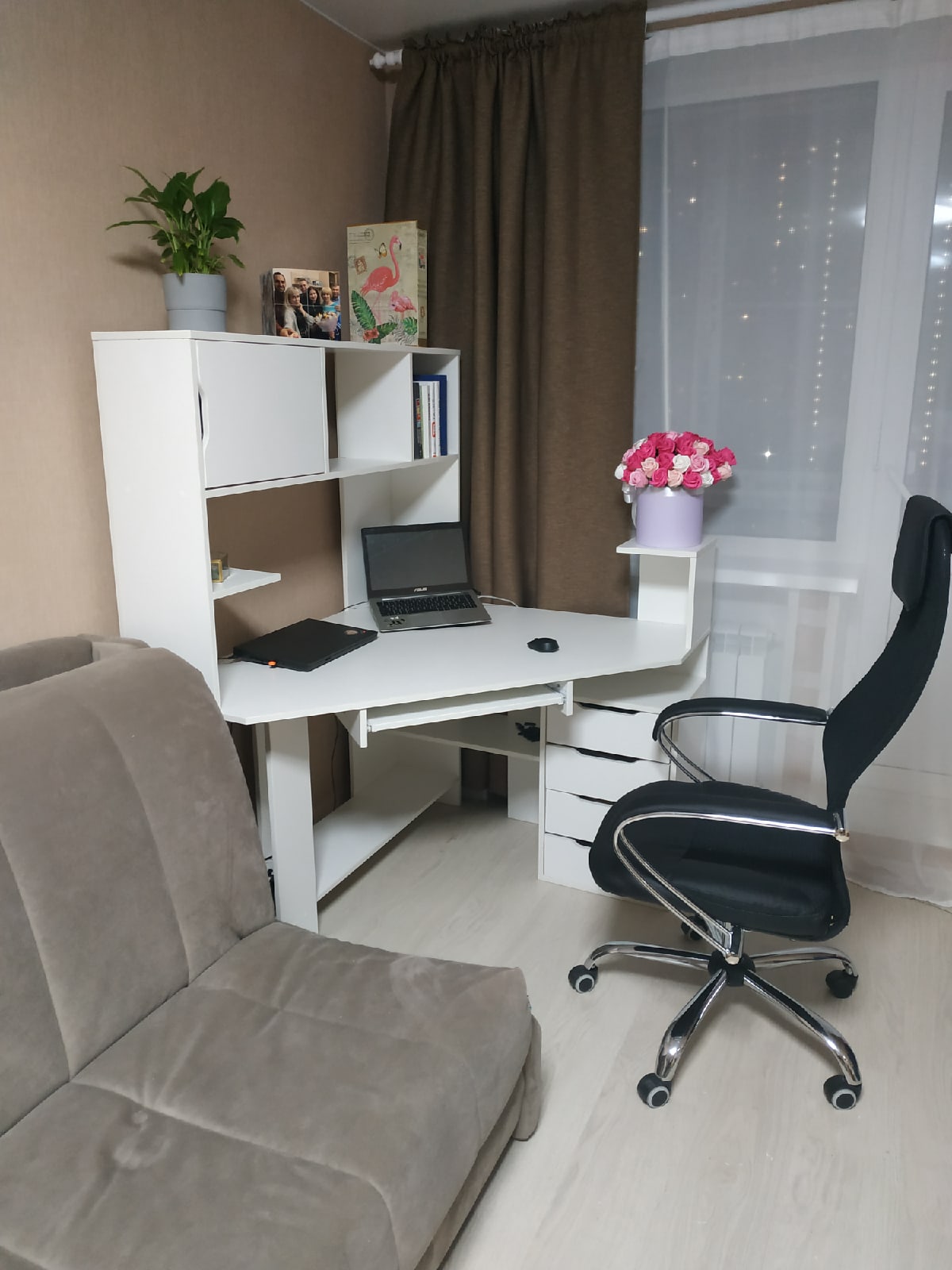 Заказ 00000394146 от 21.04.2020Модель стола очень удобна, вместительный ящик, тумба, полка. Сделали по нужному мне размеру. Можно тумбу сделать и на другую сторону (для левши и правши). Собирали самостоятельно, никаких сложностей. Навесную полку тоже в этом магазине заказывала под нужный мне размер.Bestmebelshop отличный интернет-магазин и производитель! Производство работало даже в пандемию. Любую понравившуюся модель можно заказать в любых размерах. Изготавливают быстро. Доставка бесплатная!Инструкция по сборке не простая. Хотелось бы более пошаговую. Но если голова работает, то собрать самостоятельно можно.Буду заказывать у них ещё и друзьям советую.