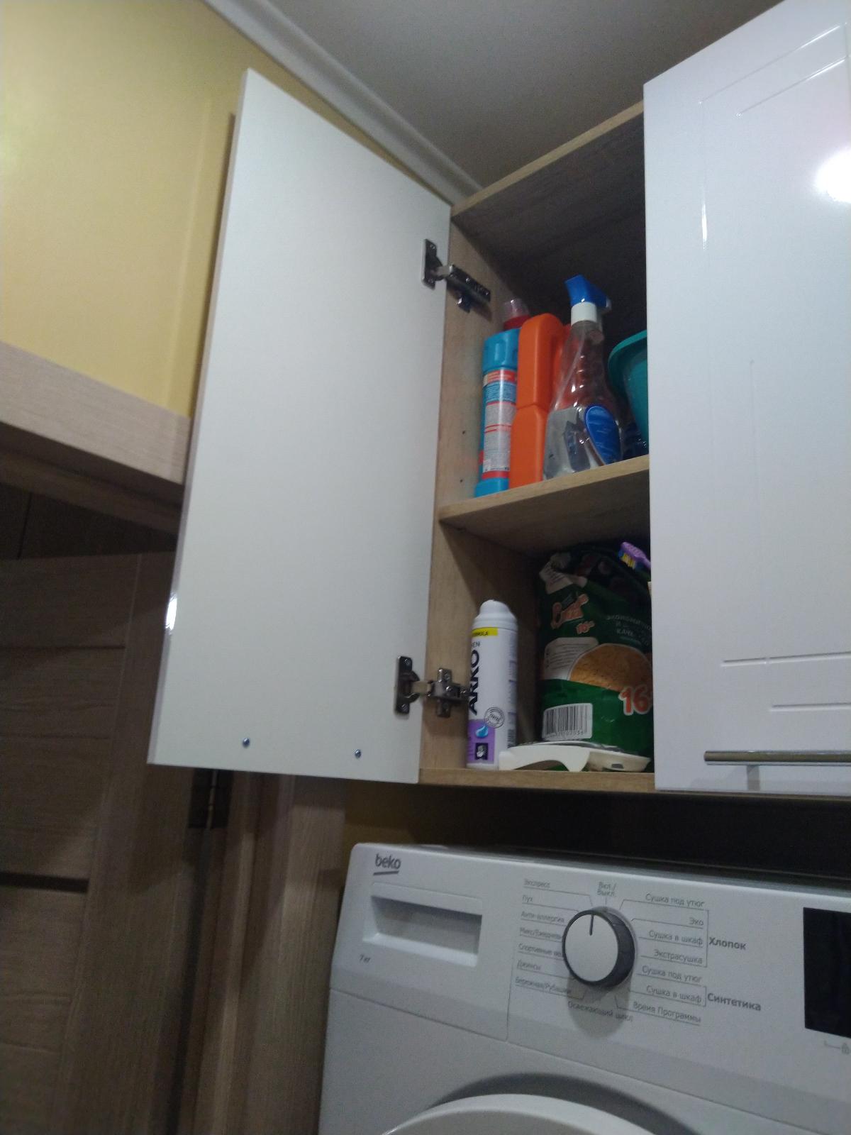 Я приобрела этот шкаф в этом магазине в первую очередь из-за его цвета, так как кухня у меня оранжевая, я долго искала шкаф. А тут еще и размер подобрать можно. Собирала с мужем сама, все быстро и просто, не надо ничего сверлить , все совпадает. Дверки на нем глянцевые, пришли заклеянные пленкой, ручка хром металл. Очень вместительный, мы в восторге.